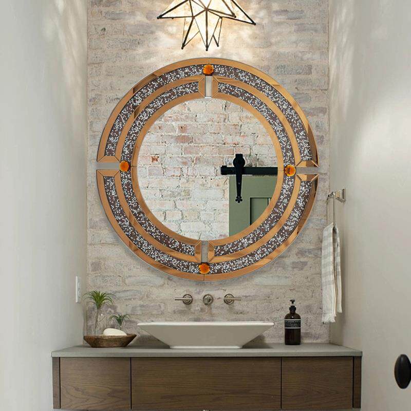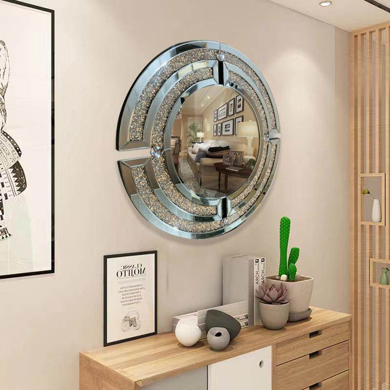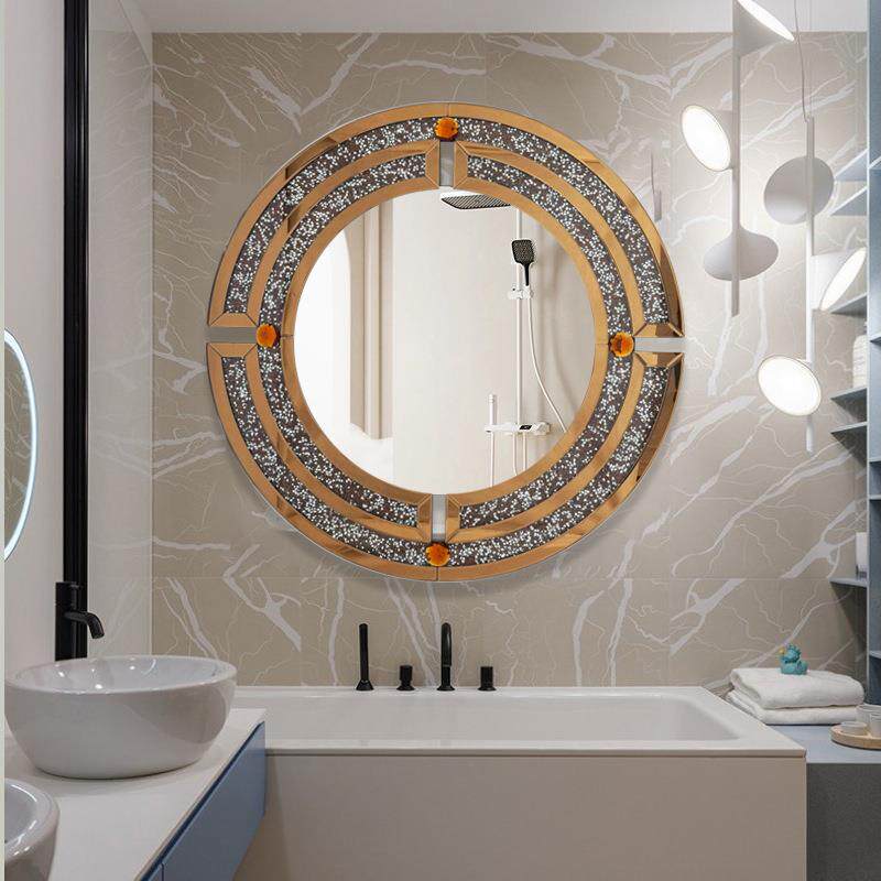 外贸壁挂式轻奢圆形碎钻镜法式卫生间浴室柜镜子化妆镜客厅装饰镜