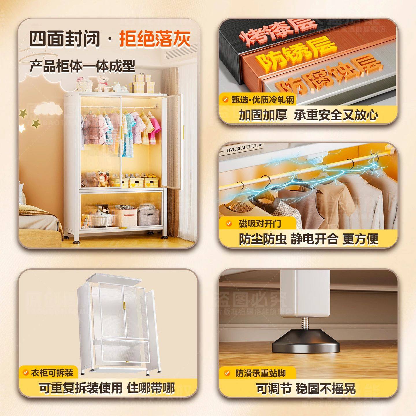 简易衣柜卧室家用出租房用组装全钢架新款衣橱收纳柜子金属衣架