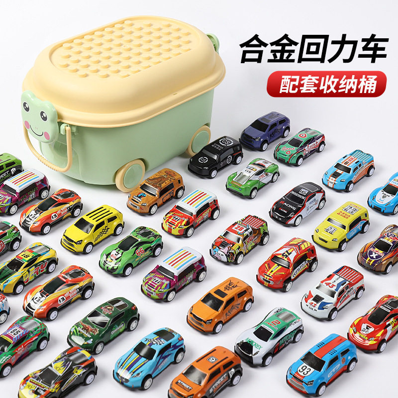 回力迷你合金飞机儿童小汽车模型玩具收纳桶装套装铁皮车耐摔批发