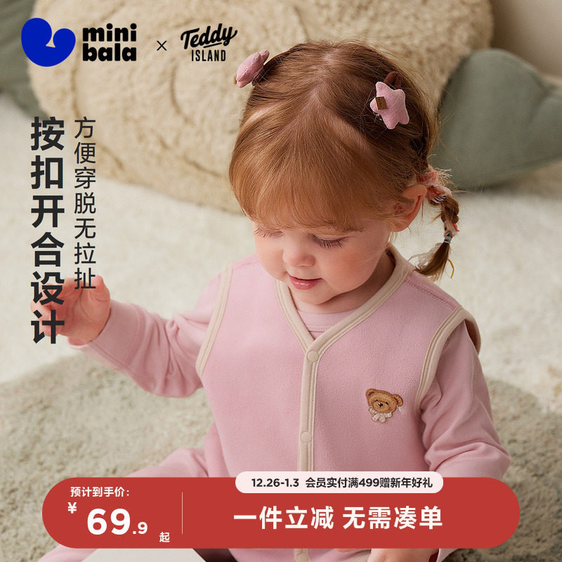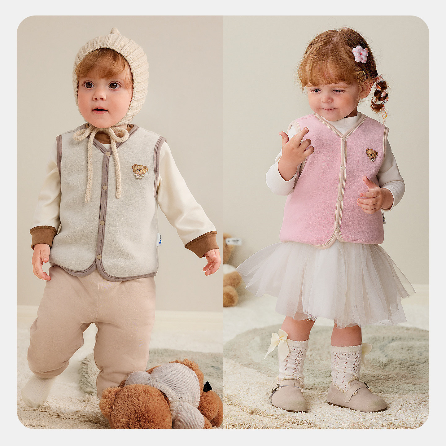 【泰迪熊IP联名】迷你巴拉儿童保暖背心男女童宝宝抓绒家居马甲