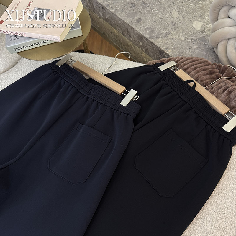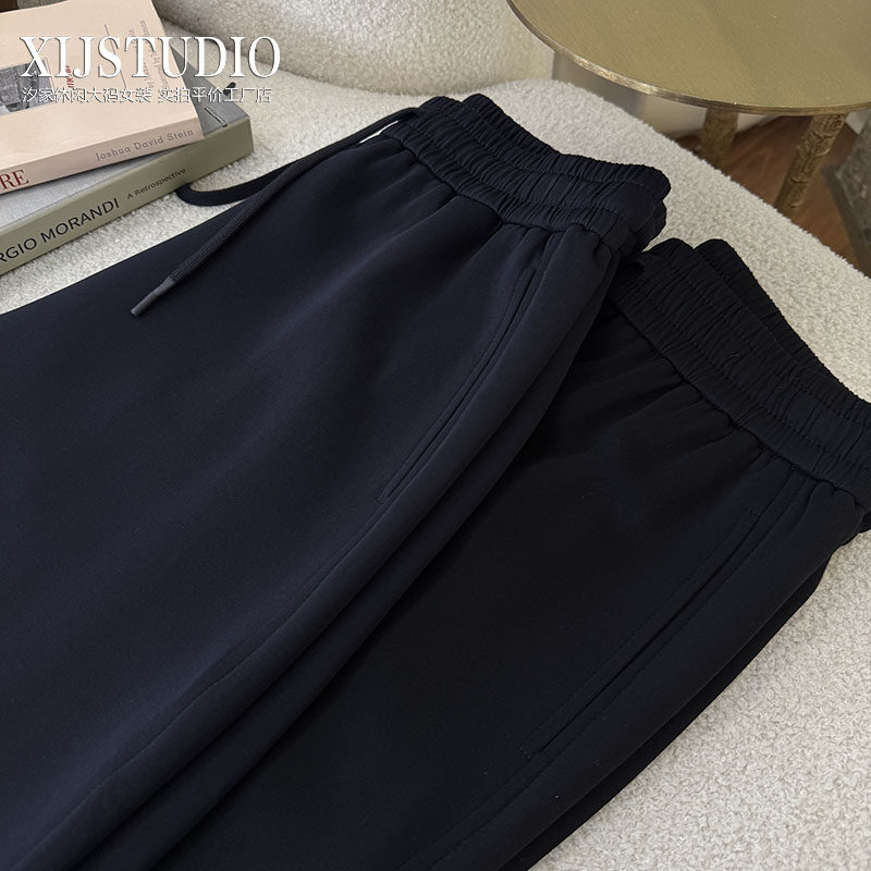 大码女裤240斤胖mm显瘦宽松遮肉黑色加厚哈伦裤奶奶裤休闲裤 长裤