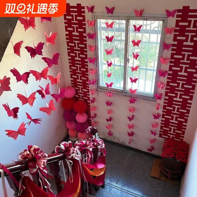 结婚婚房布置超出片长条囍蝴蝶拉花套装