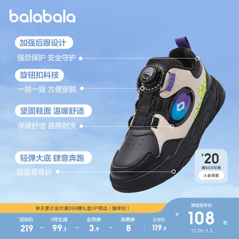 巴拉巴拉童鞋儿童板鞋男童低帮运动鞋舒适秋冬透气鞋子旋钮扣潮流