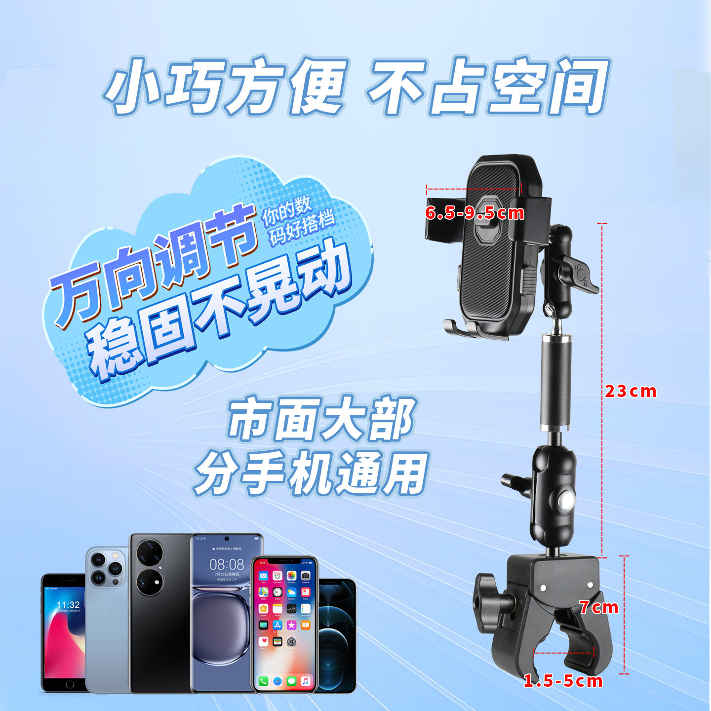 新型多功能手机支架万向旋转摆摊三轮车汽车方向盘货车公交车夹架