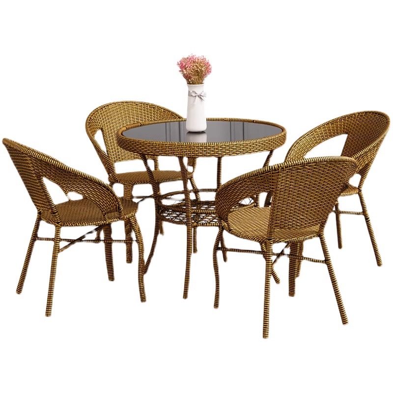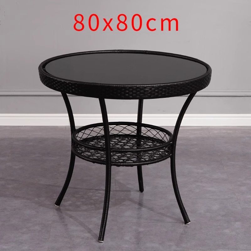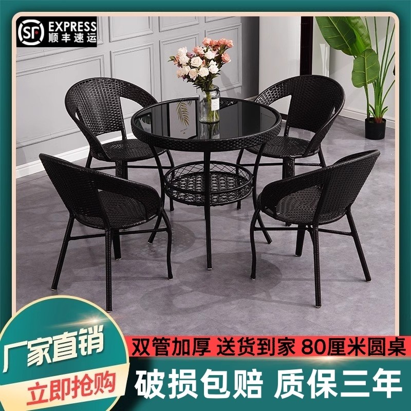户外阳台小桌椅庭院茶桌椅组合藤编椅子三件套80圆藤茶几休闲桌椅