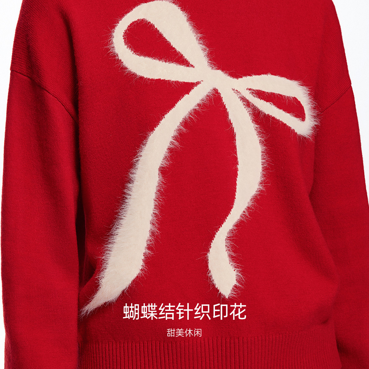 罗纹圆领 简约大气;蝴蝶结印花 甜美休闲