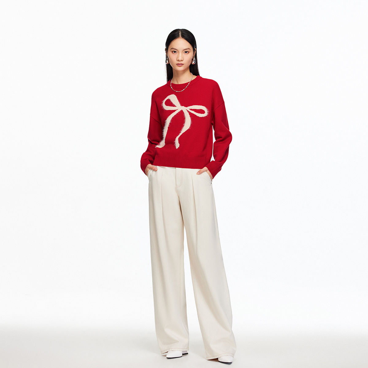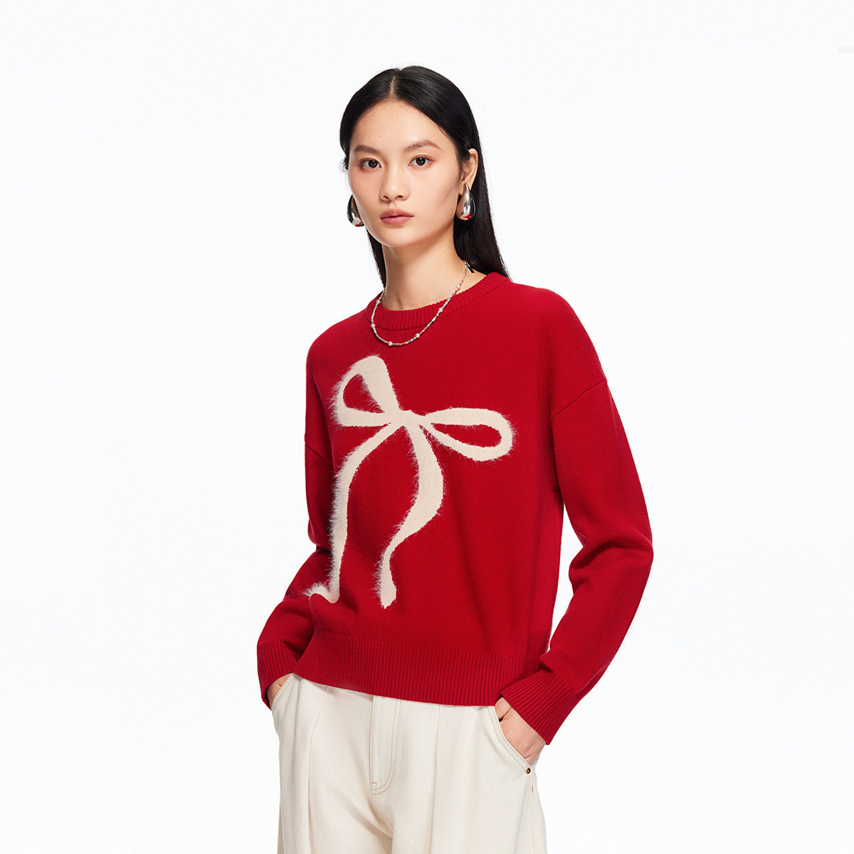 Vero Moda针织衫2025冬季新款含绵羊毛蝴蝶结红色毛衣325425004