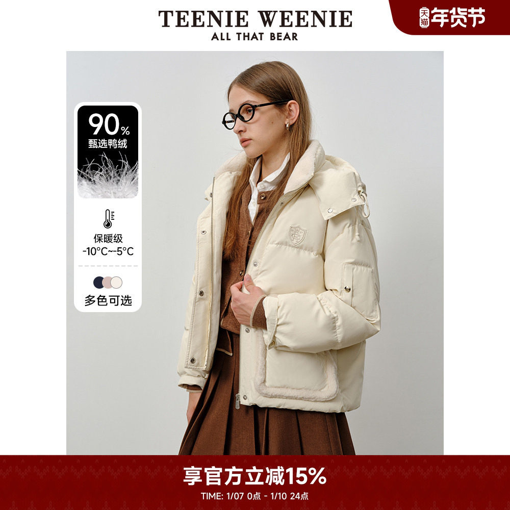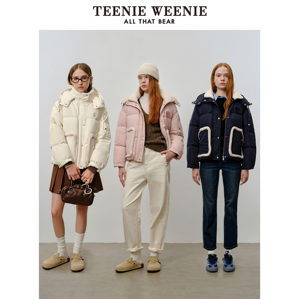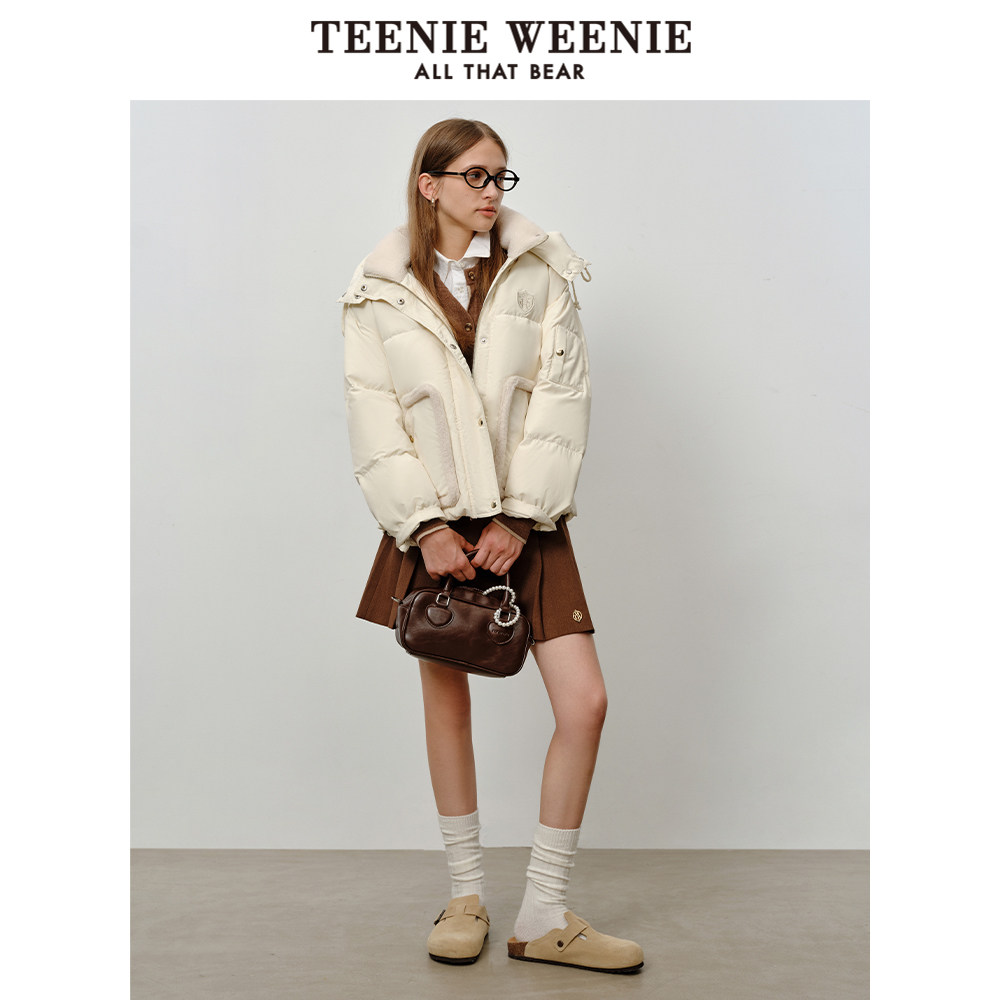 TeenieWeenie小熊奥莱女装学院风保暖外套短款仿羊羔绒拼接羽绒服