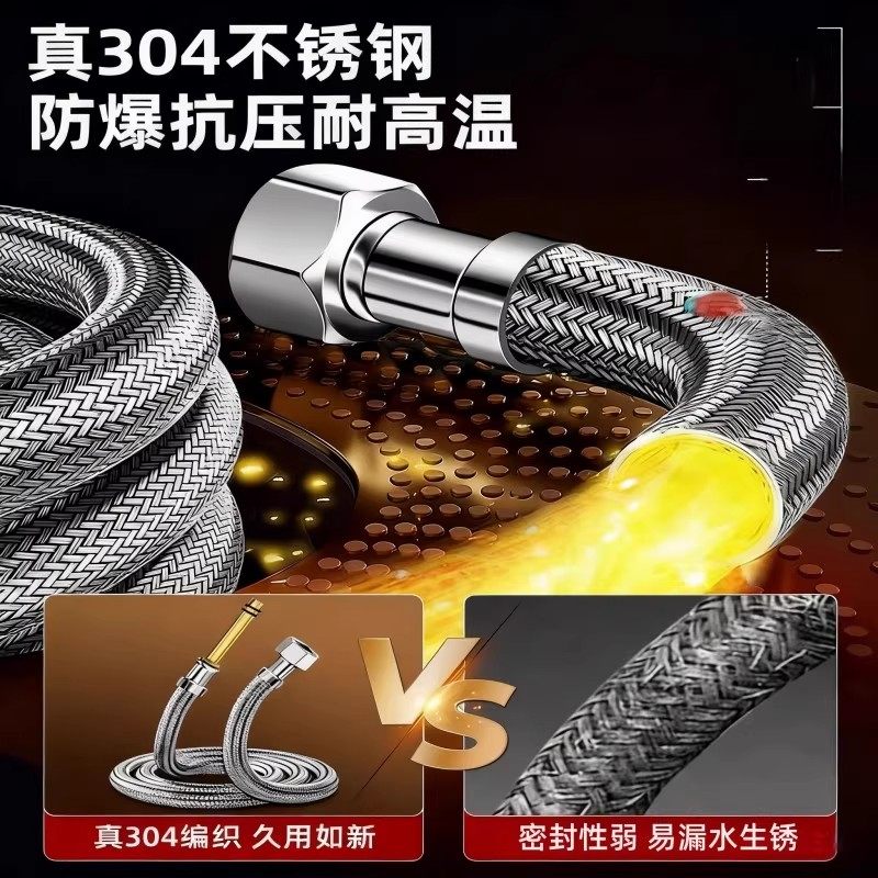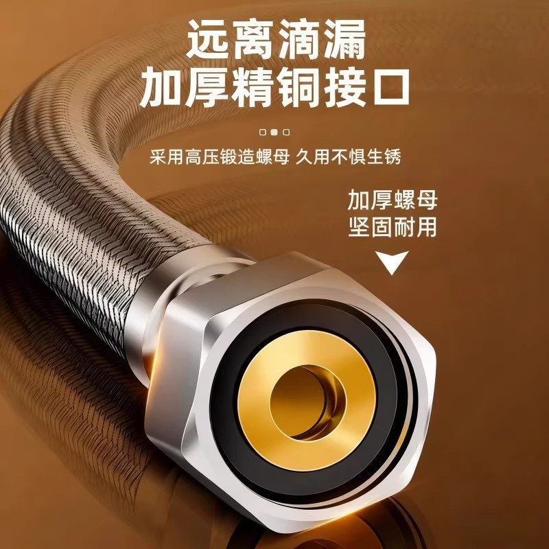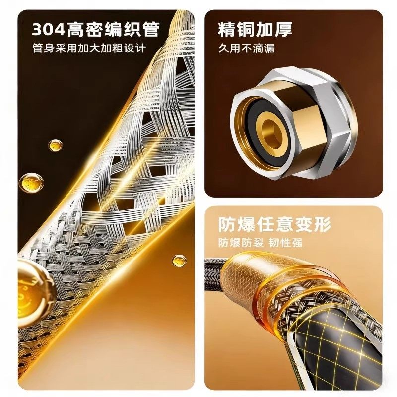 水龙头进水管防爆厨房冷热上水管不锈钢编织尖头热水软管配件加长