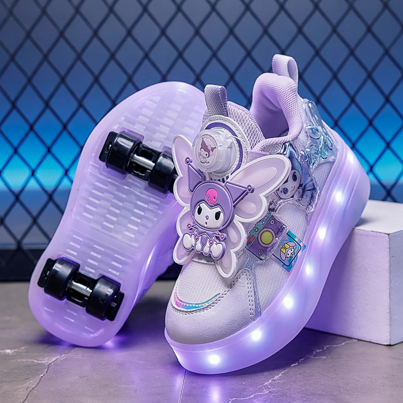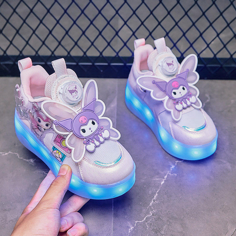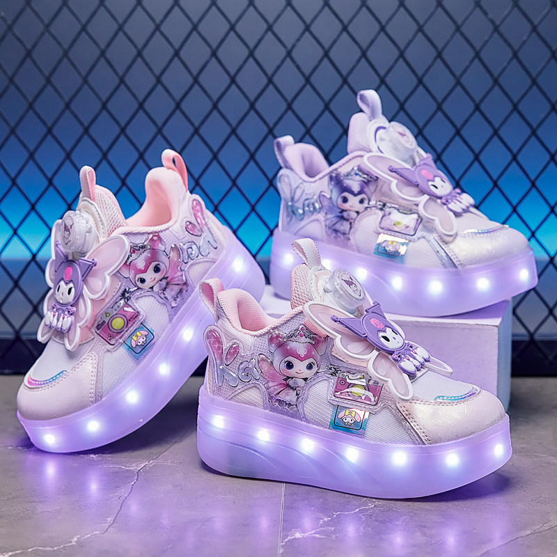暴走鞋女童秋季透气儿童运动鞋可拆装四轮库洛米小学生轮滑鞋发光