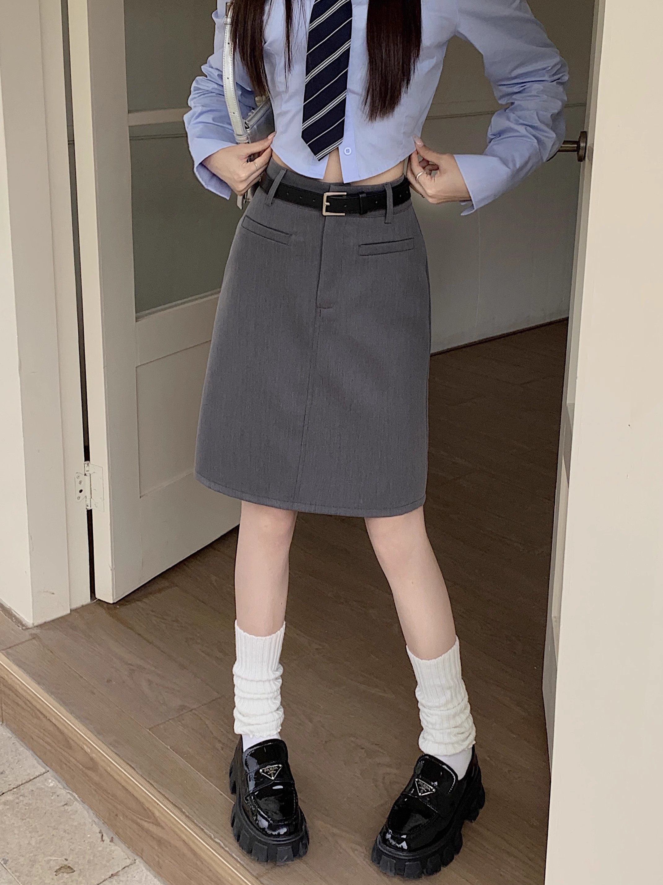 灰色a字半身裙女夏季大码胖mm高腰遮肚中长裙梨形身材小个子短裙