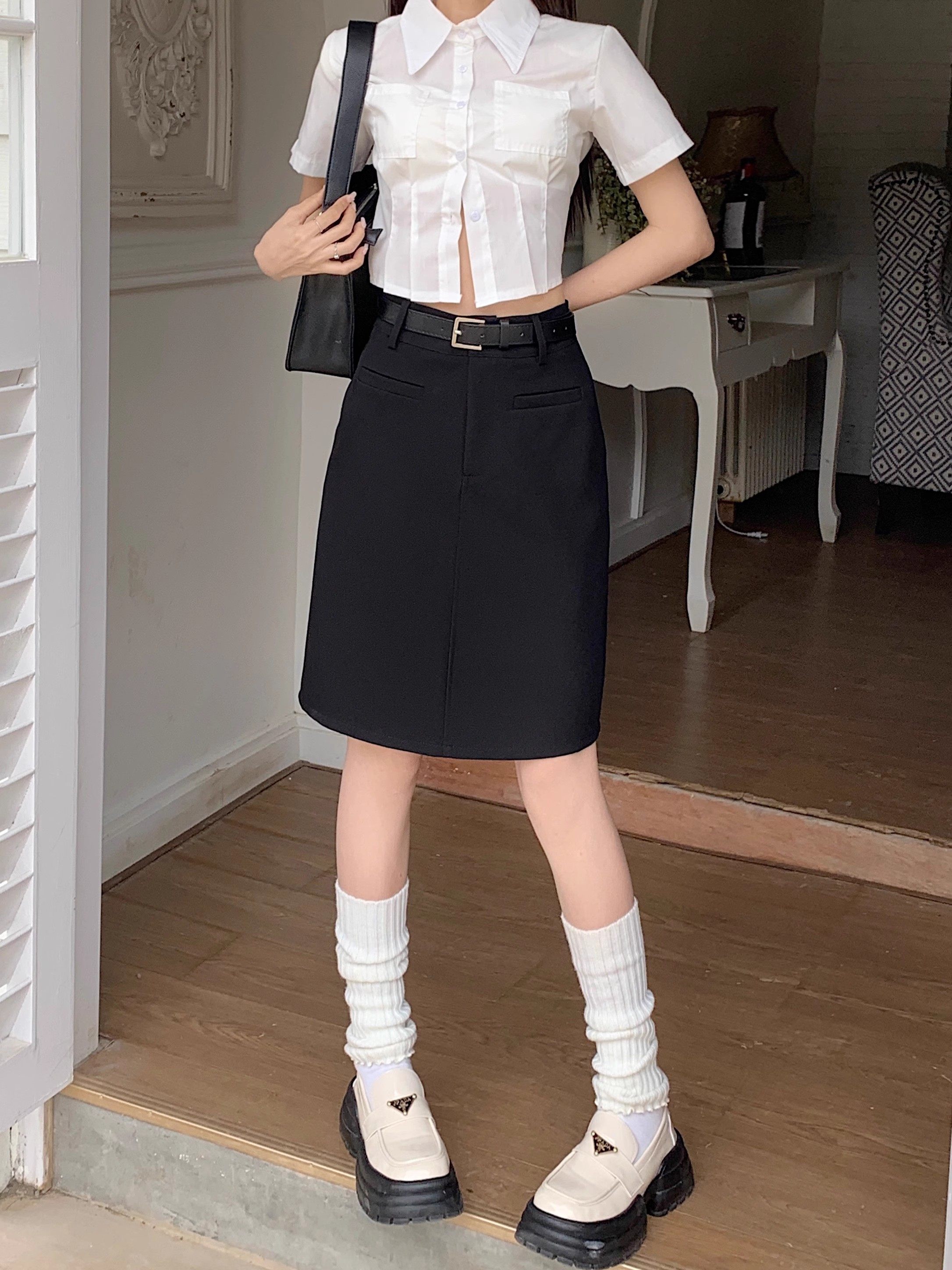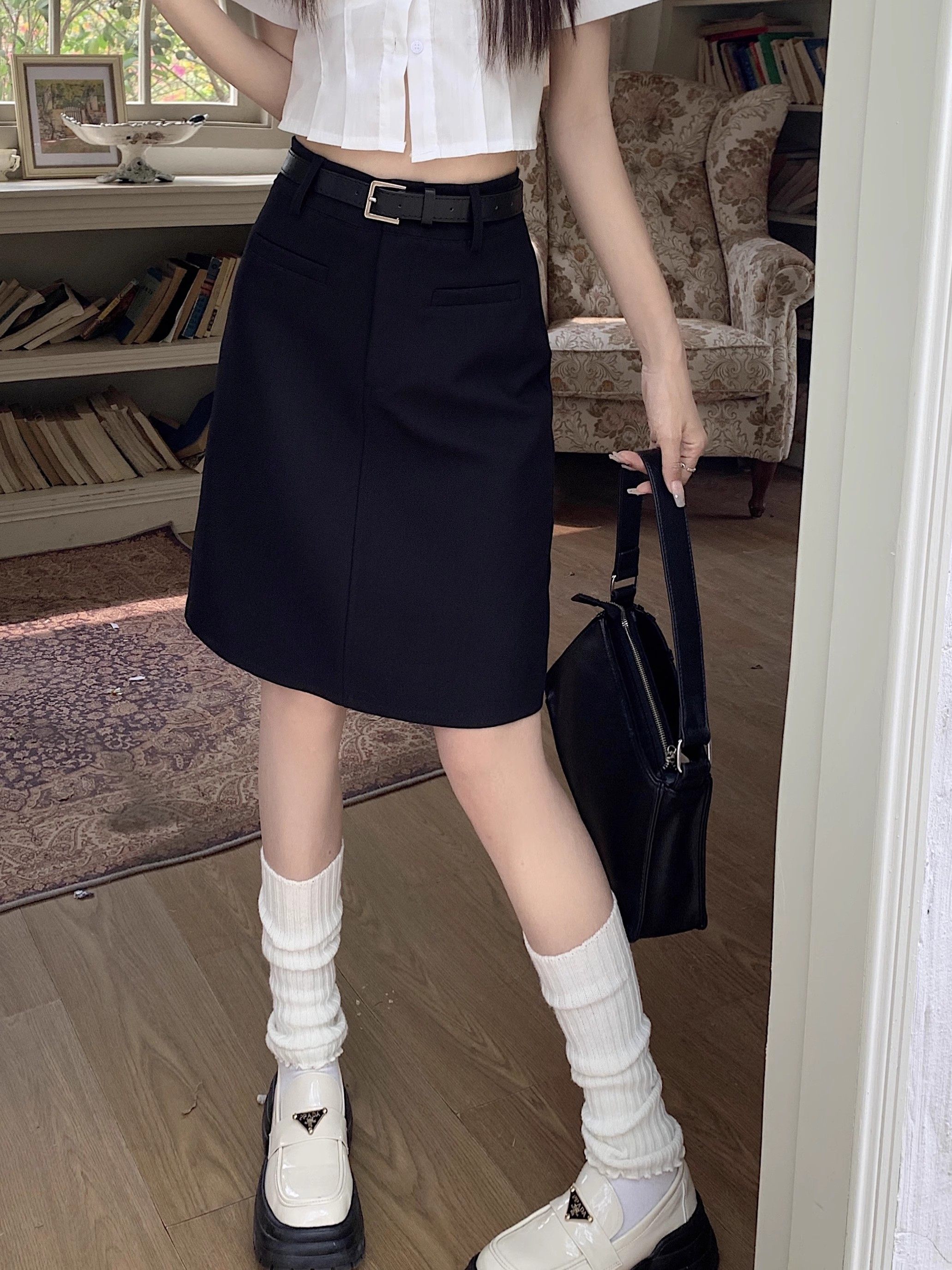 SIINSIIN直筒裙加绒2025年新款高腰收腹半身裙女黑色显瘦A字裙tk