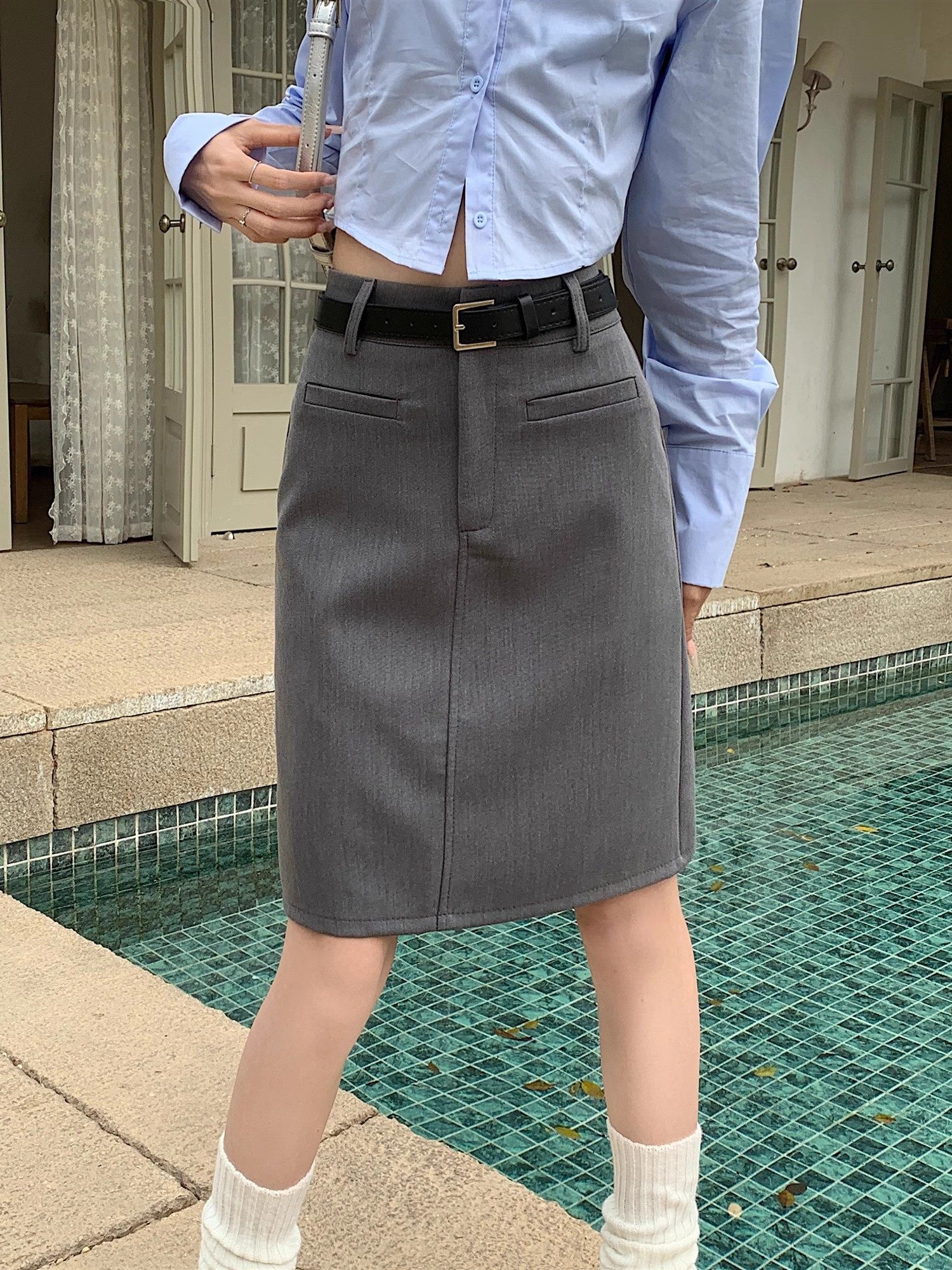 MJ STYLE灰色百褶西装裙女秋冬半身裙高腰休闲大摆a字过膝中长裙