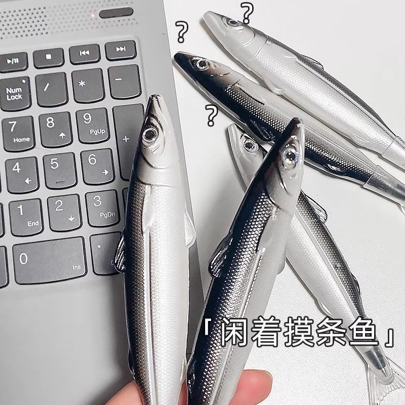 无聊了一起摸摸鱼造型笔创意学生搞怪文具圆珠笔0.5m黑仿真闲咸鱼