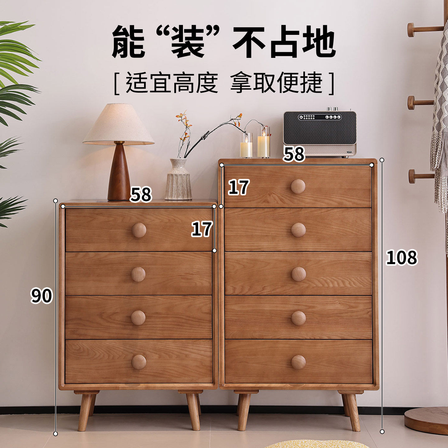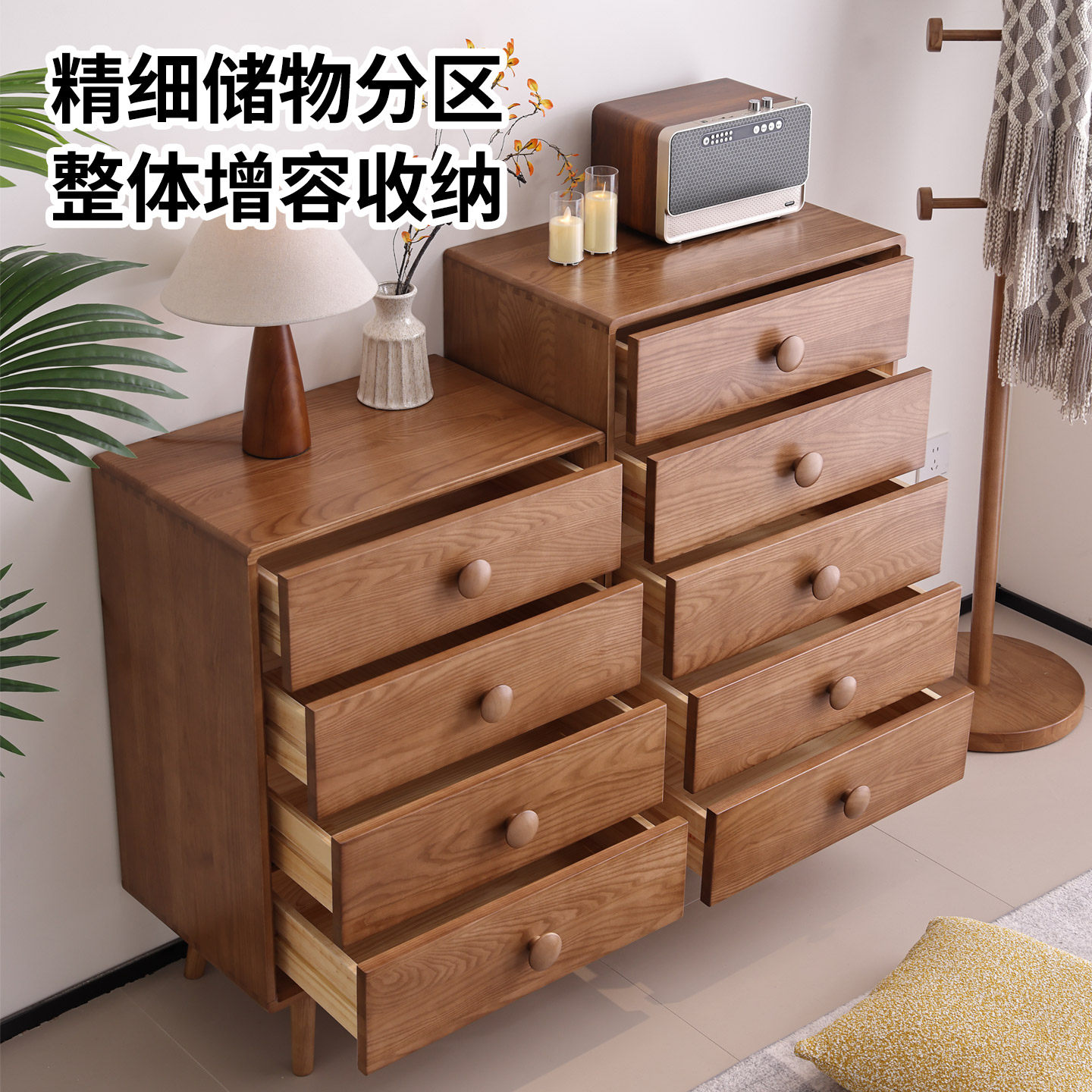优尚雅轩实木斗柜白蜡木四斗柜五斗柜小户型卧室床尾收纳储物柜