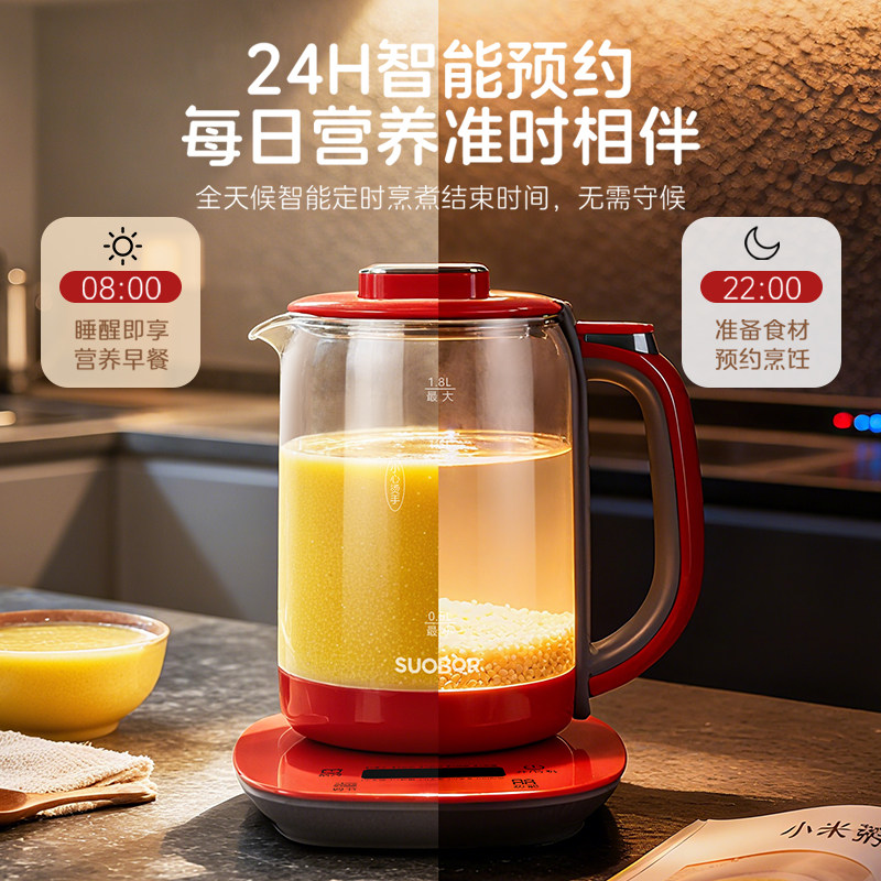苏泊养生壶小型加厚玻璃煮茶器烧水壶恒温花茶大容量一壶炖煮红色