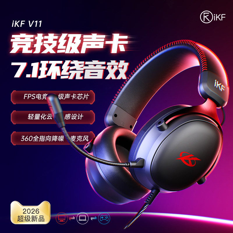 iKF V11S【有线版】电竞游戏耳机头戴式usb接口7.1声道带麦三角洲