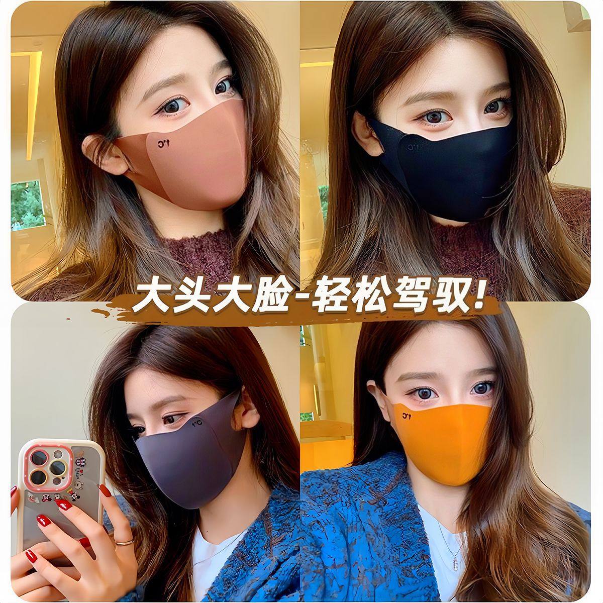 新款加厚秋冬防晒保暖口罩立体无痕护眼角纯色时尚防风美拉德口罩