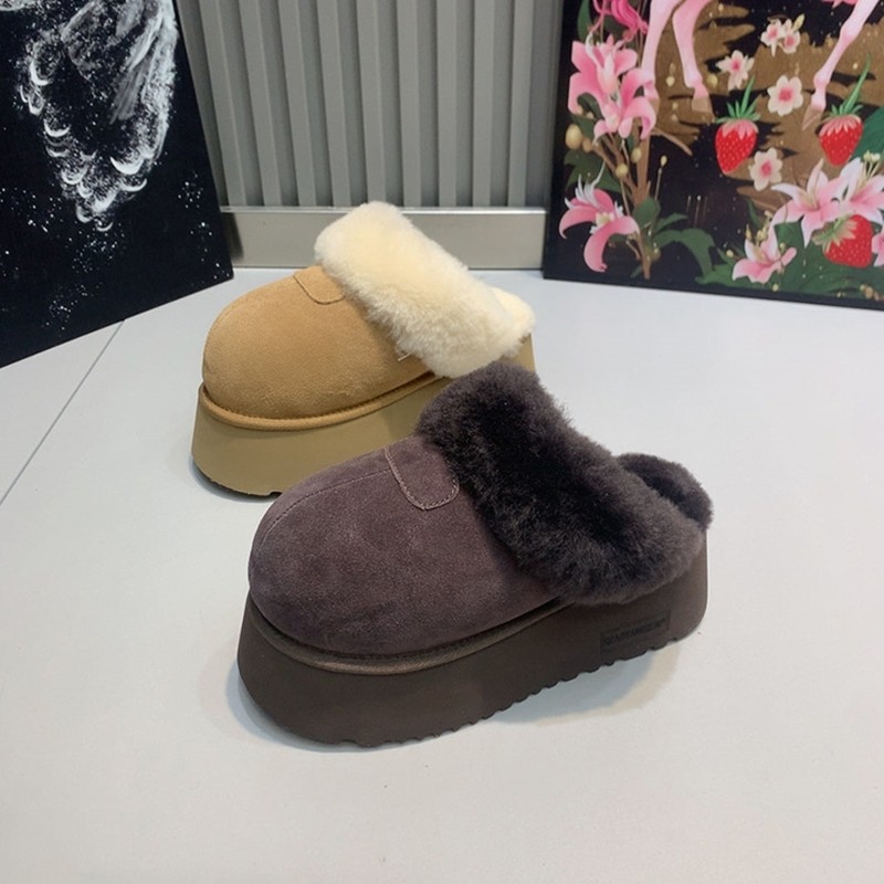 2025卡皮巴拉冬季新款磨砂厚底松糕增高羊羔毛包头拖鞋加绒雪地靴