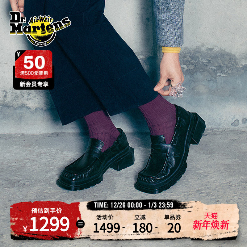 Dr.Martens马丁博士Maybole Loafer新款褶皱百搭一脚蹬皮鞋乐福鞋