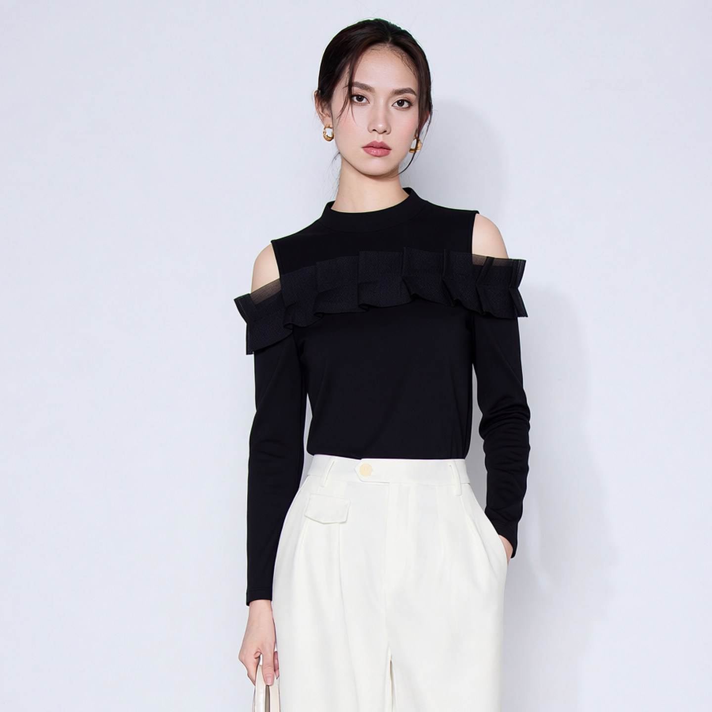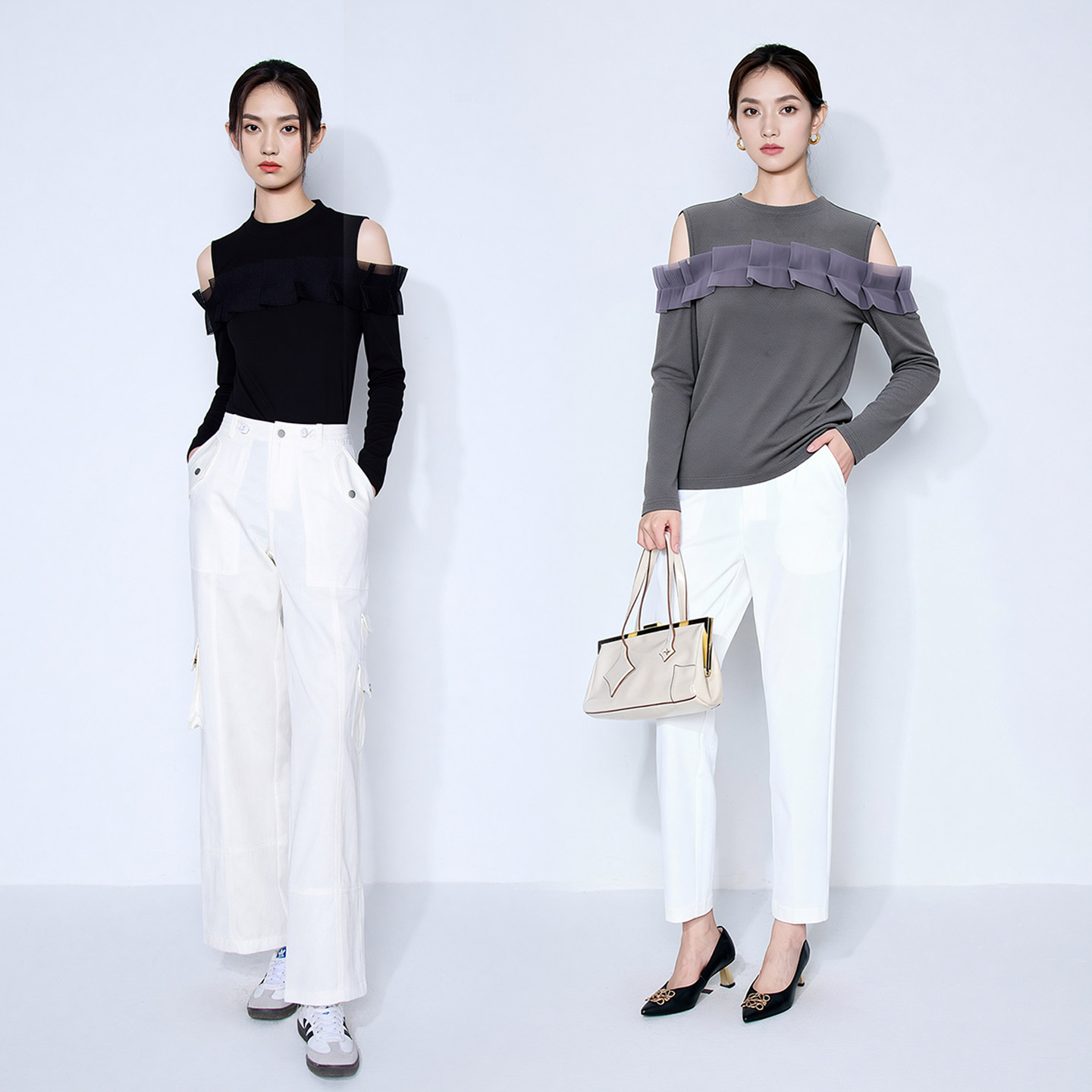 棉质混纺面料 精致露肩设计 精美花边装饰