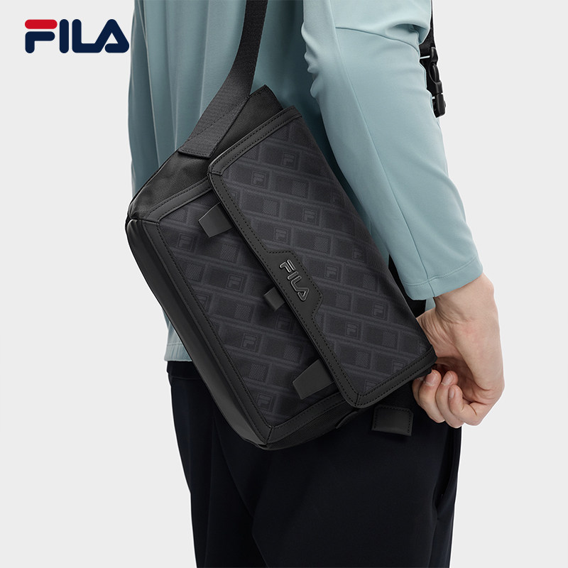 黑武士|FILA 斐乐官方男通勤挎包新款老花满印单肩包斜挎包随身包