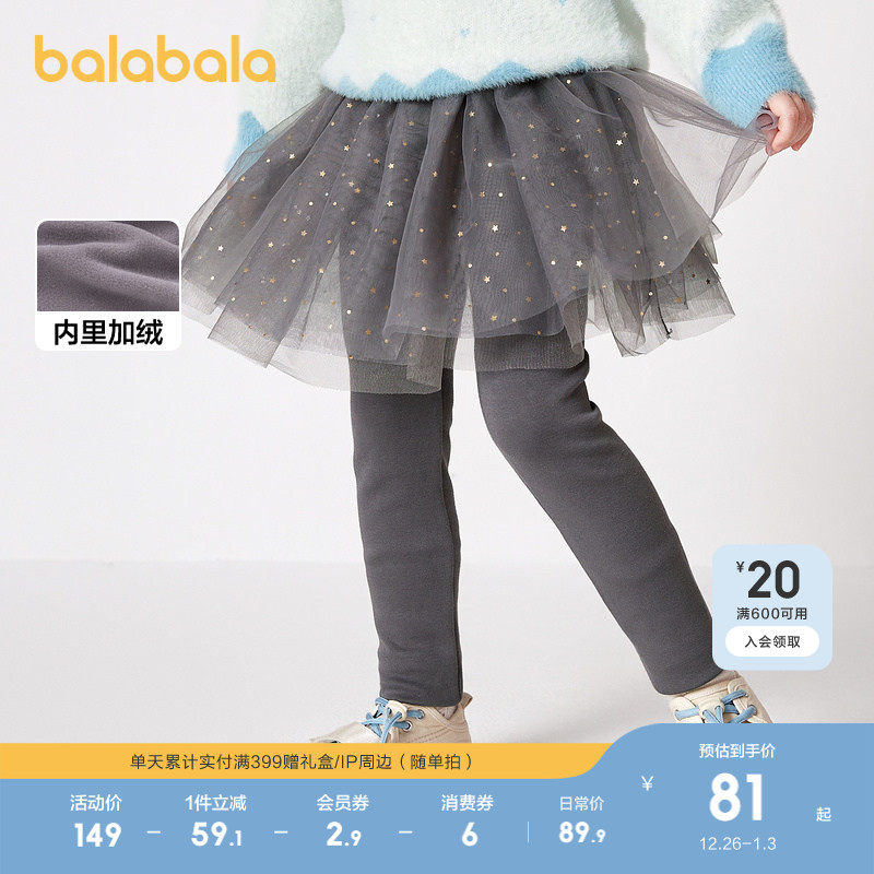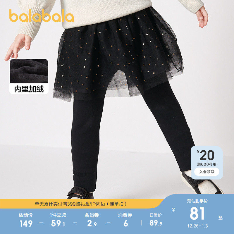 巴拉巴拉童装女童打底裤加绒儿童裤子冬网纱小童宝宝加厚洋气保暖