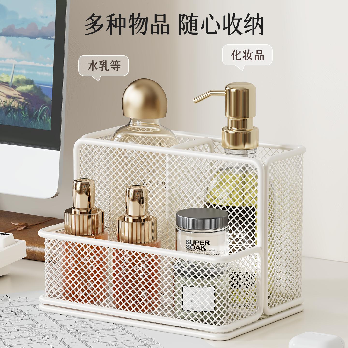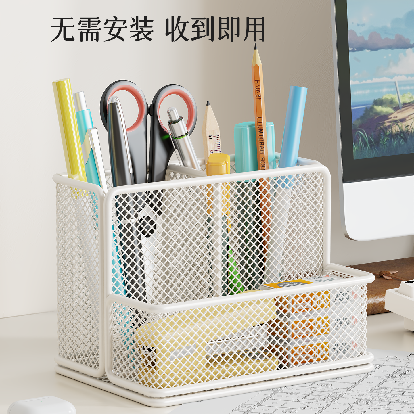 笔筒办公桌面收纳盒大容量多功能笔盒学生书桌杂物收纳架简约网格金属笔插文具商务笔类整理架办公用品储物架