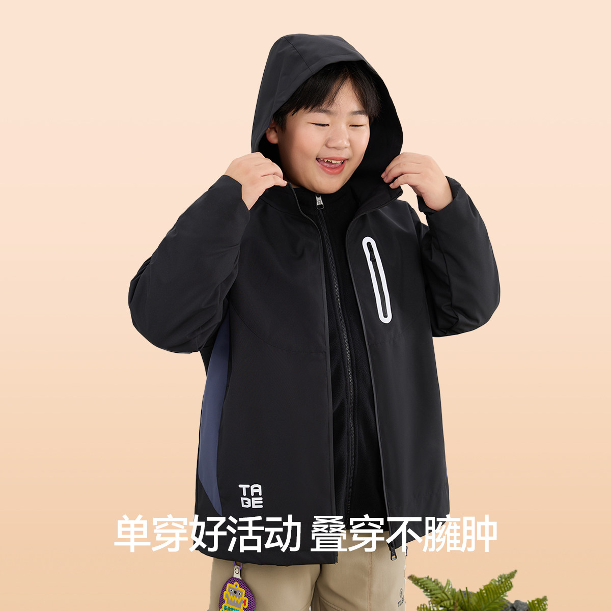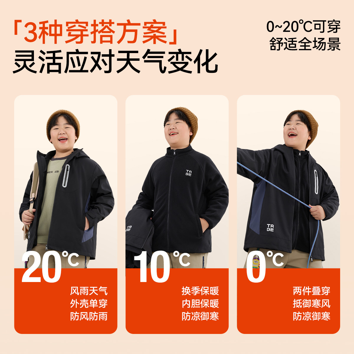 巴布豆童装男外套三合一儿童外套秋冬装2025新款防风防水软壳上衣