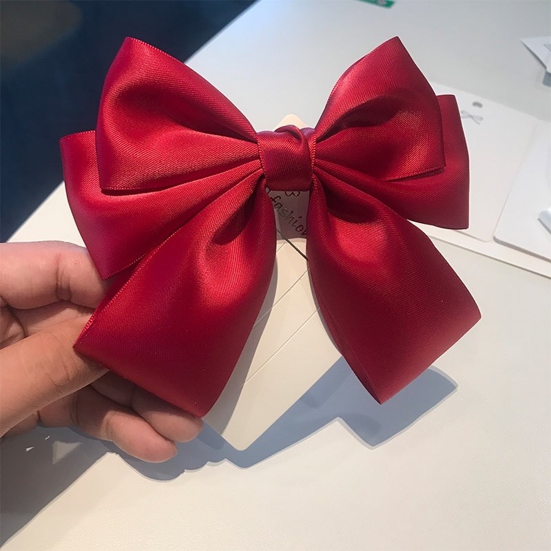 纯手工红色大蝴蝶结发夹头饰马尾蝴蝶结女后脑勺儿童表演发饰弹簧