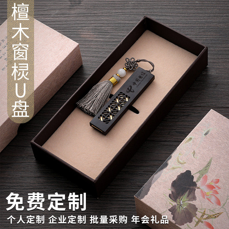 创意中国复古风红木u盘32g优盘定制刻字企业团购礼品网红生日礼物