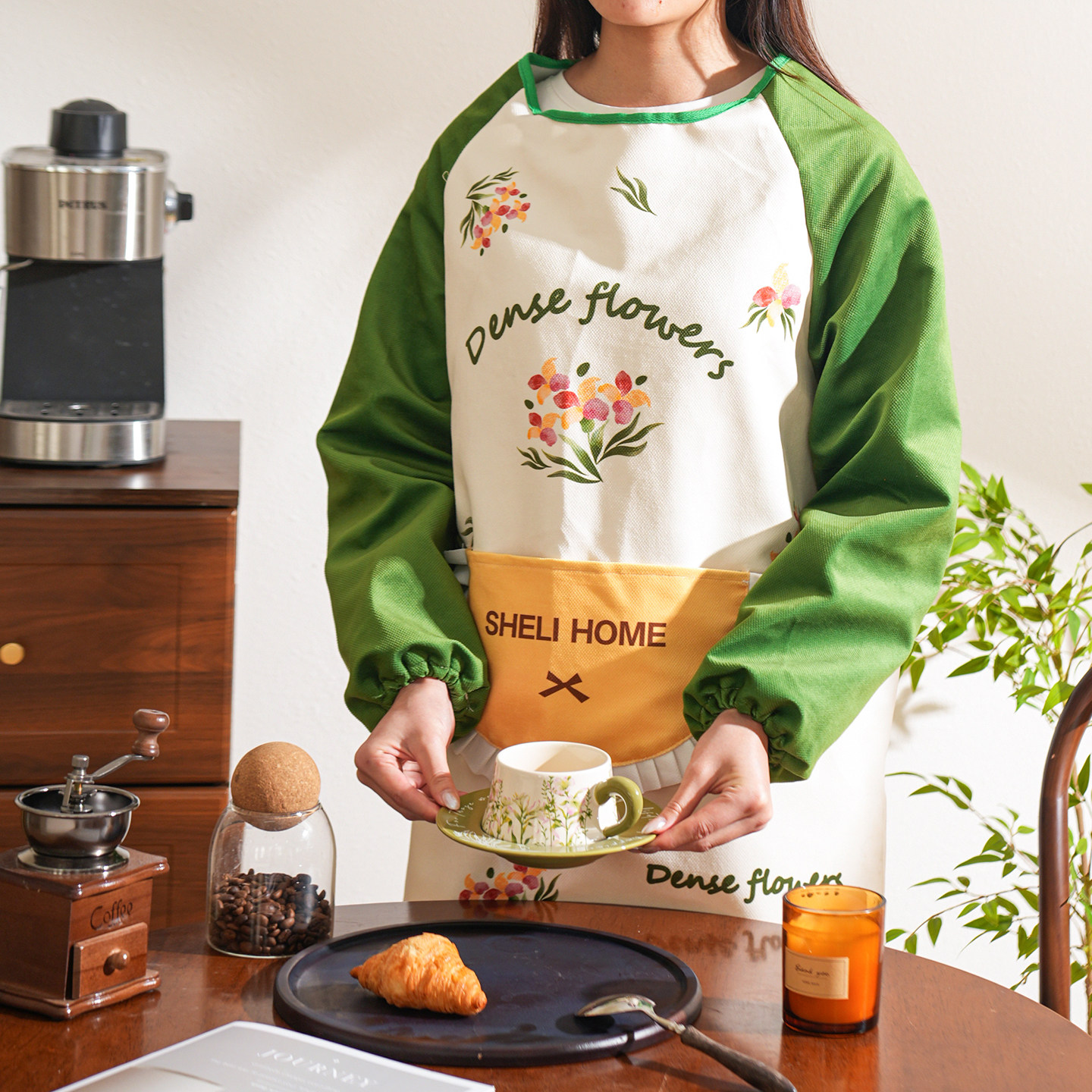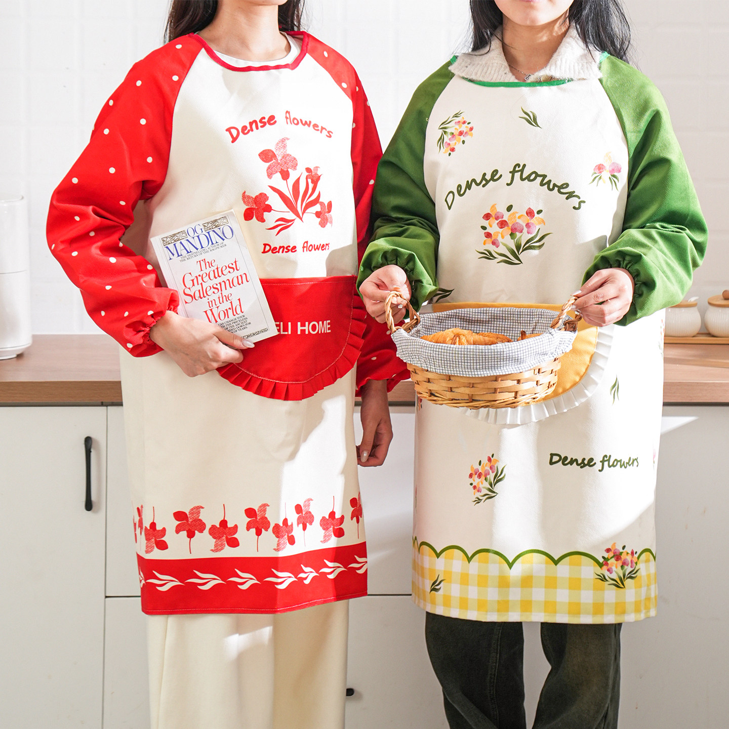 新款棉布耐磨围裙长袖厨房家用防污罩衣透气围腰做饭上班工作服女
