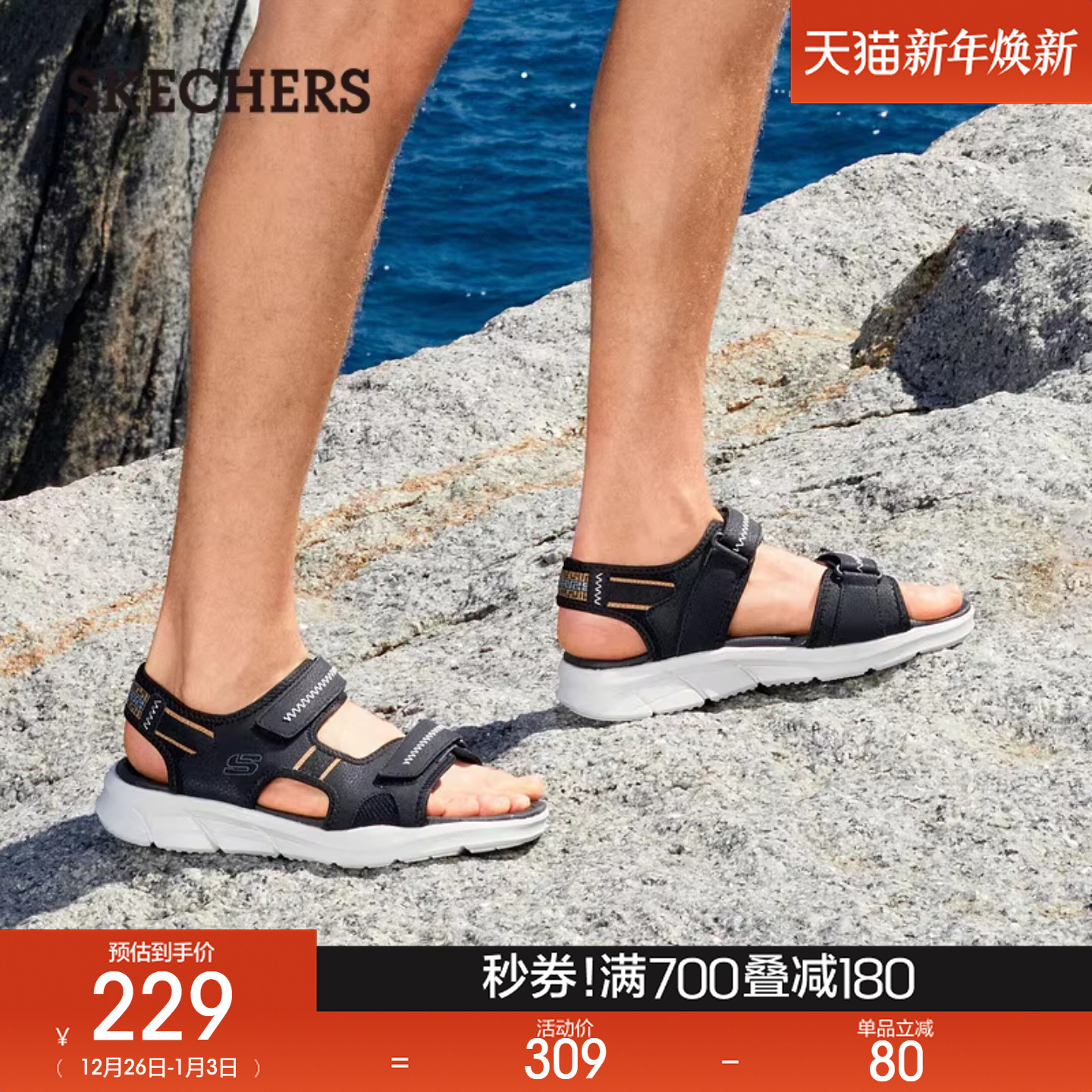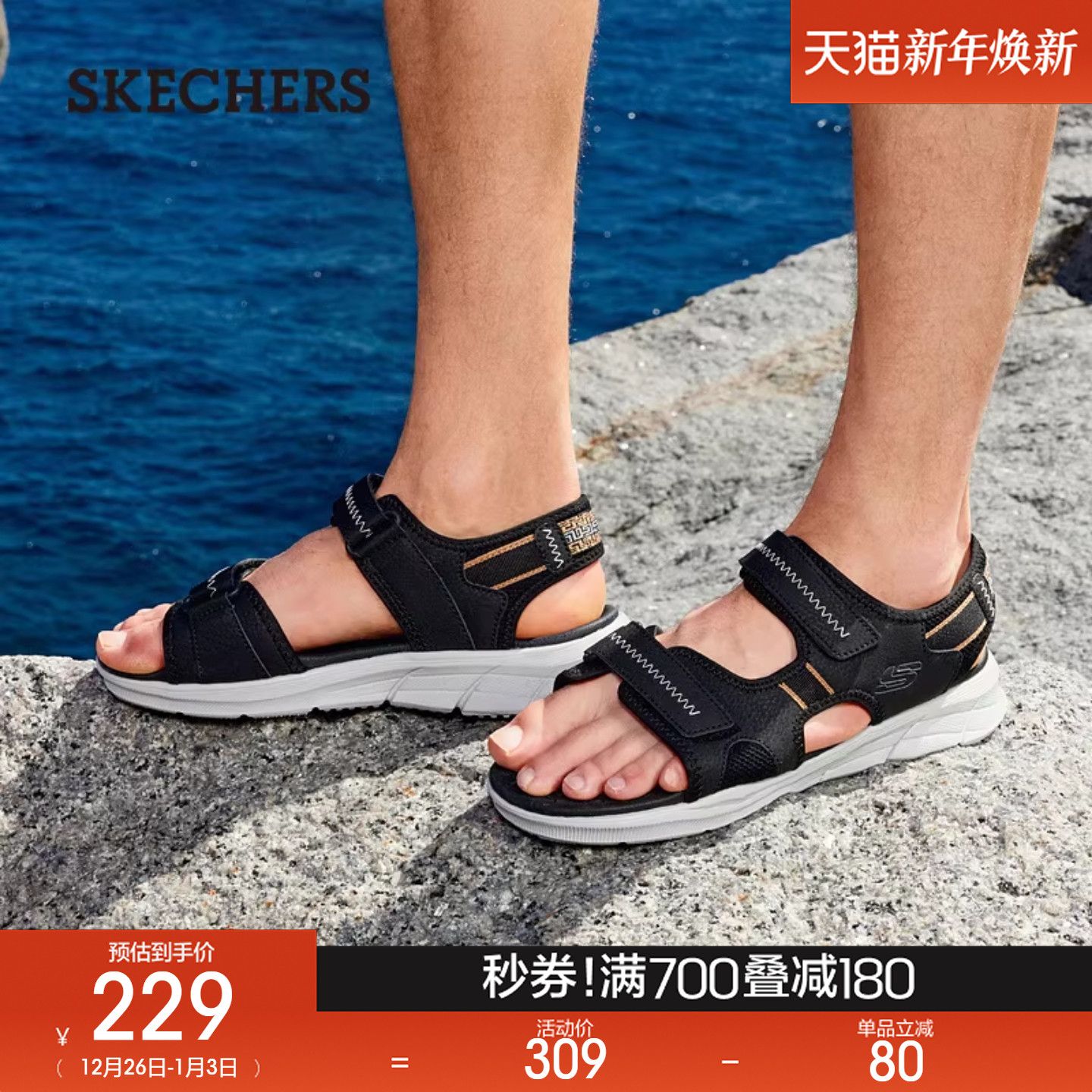 Skechers斯凯奇男鞋沙滩凉鞋户外休闲鞋软底魔术贴外穿拖鞋夏季