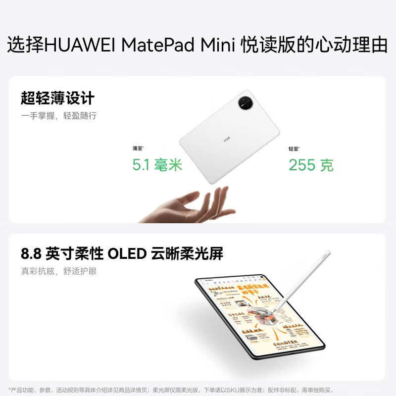 【活动专用】HUAWEI MatePad Mini 悦读版华为平板电脑8.8英寸OLED屏SIM卡通话官方授权正品新品