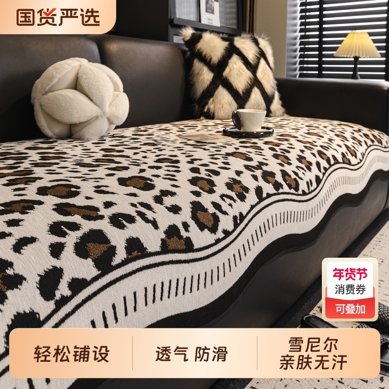 异形雪尼尔沙发垫四季通用豹纹新款固定防滑坐垫一片式直排盖布巾