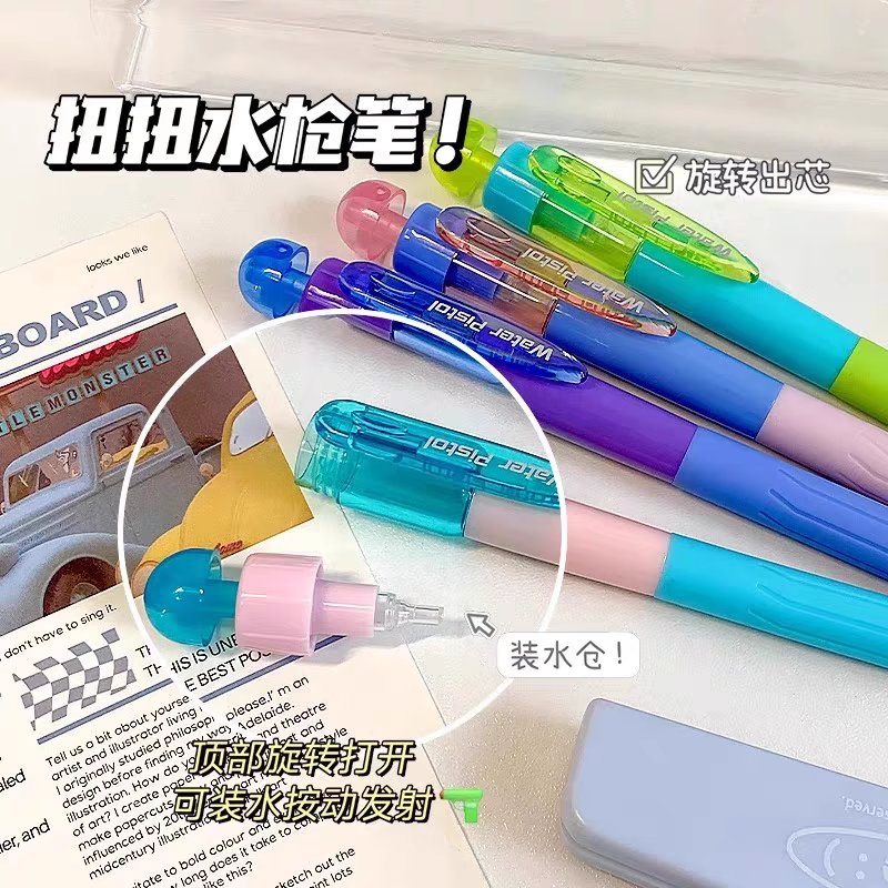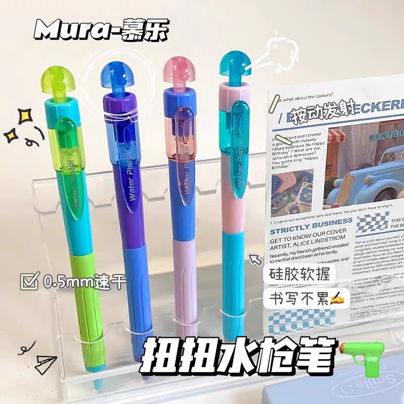 慕乐扭扭水枪笔按动旋转出芯中性笔学生解压整蛊刷题笔顺滑速干转转笔暗藏玄机黑科技水笔圆珠笔奇葩文具搞怪