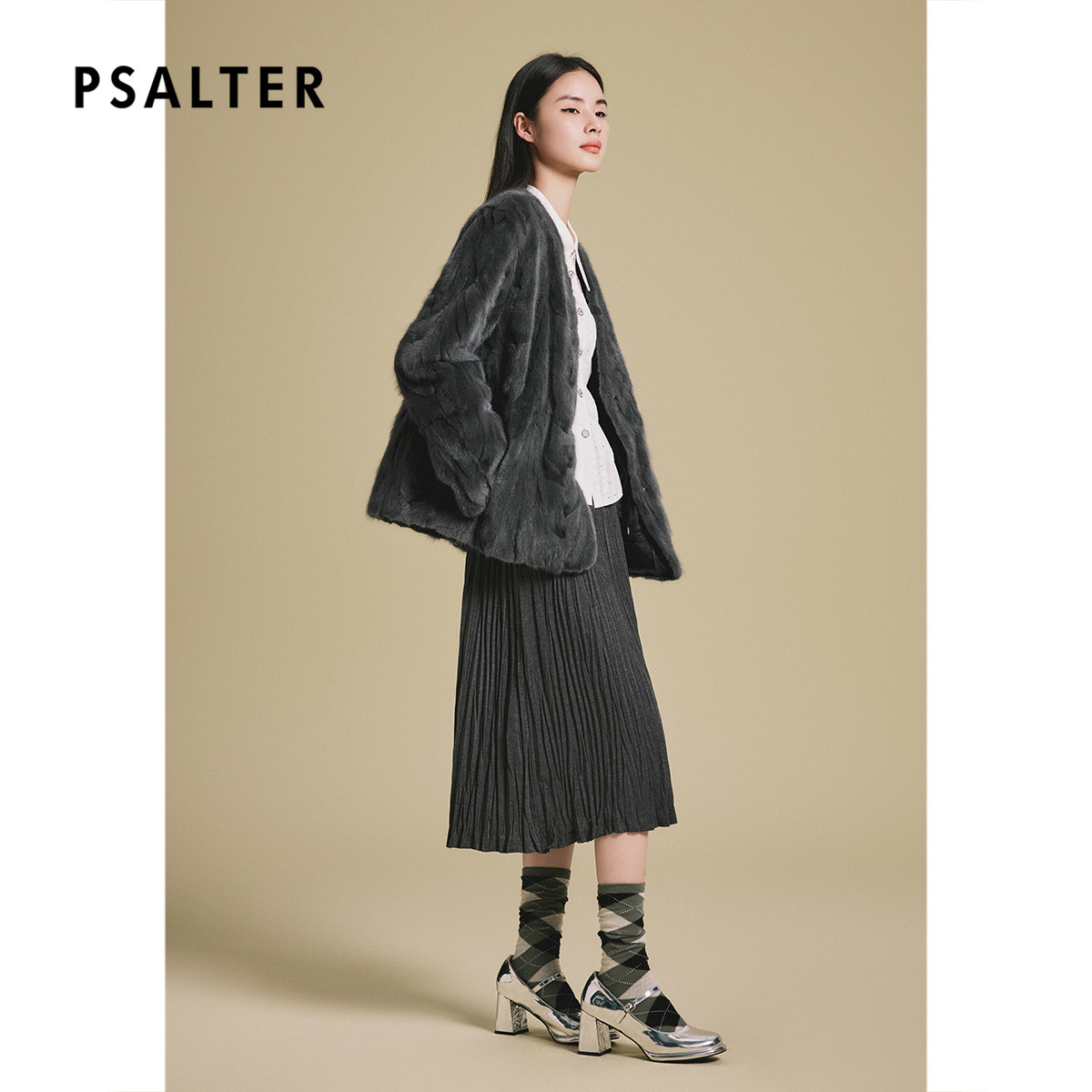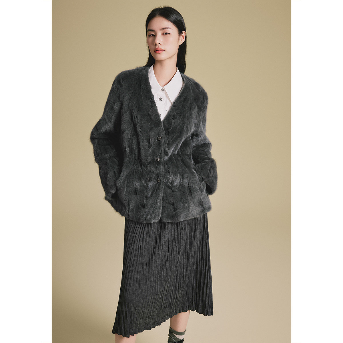 诗篇专选一手长V领H廓形桑蚕丝填充内胆水貂皮草外套2025新款