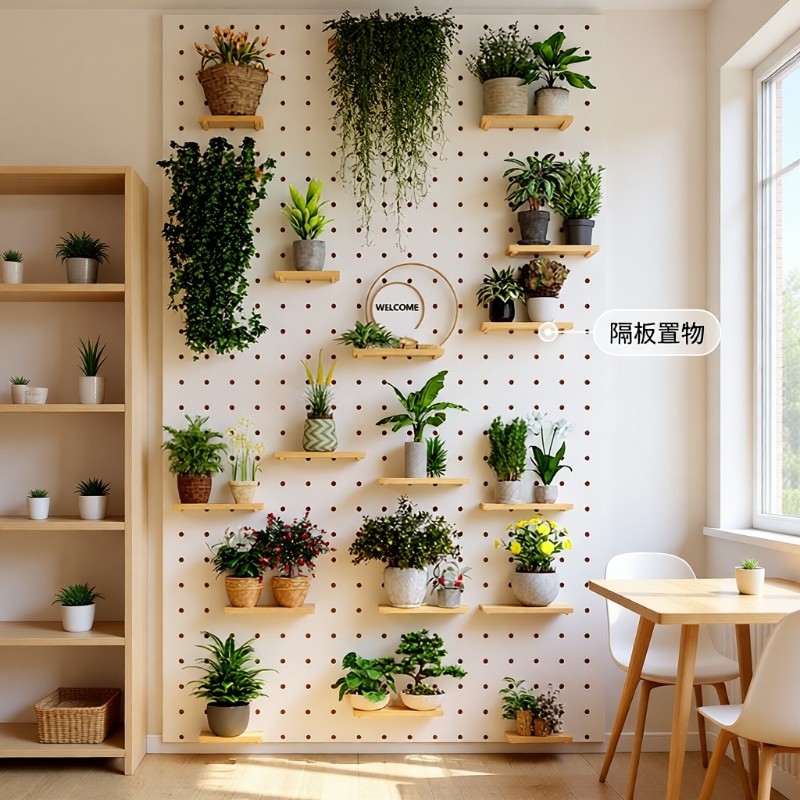 阳台洞洞板置物架配件实木花架绿植墙免打孔装饰墙木板墙面隔板