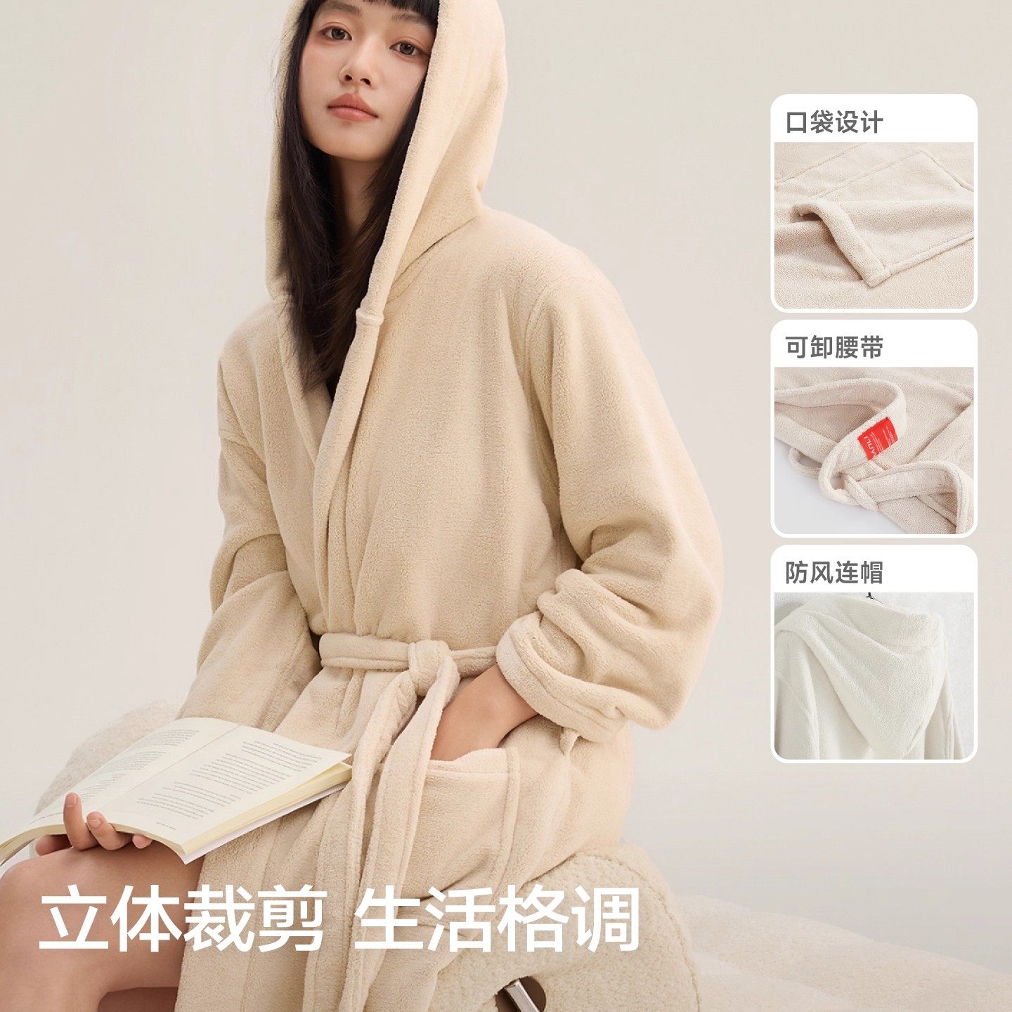 10A抗菌浴袍加厚女吸水速干浴衣洗完澡穿的睡袍男长款可穿浴巾冬