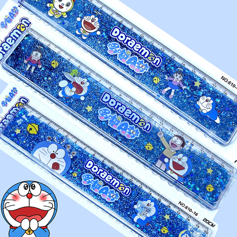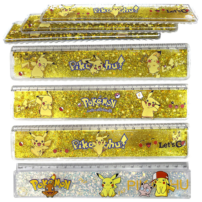 皮卡丘机器猫卡通可爱尺子男小学生儿童直尺带波浪线流沙减压入油
