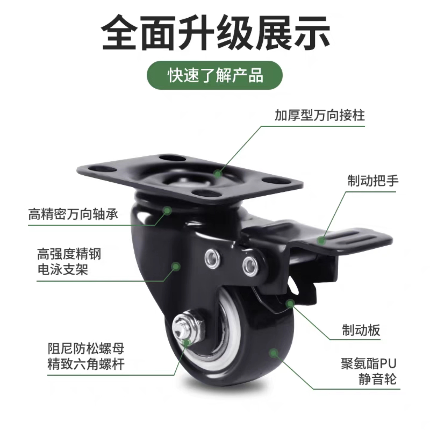 万向轮重型脚轮静音转向轮定向轮转椅滑轮手推车拖拉车带刹小轮子