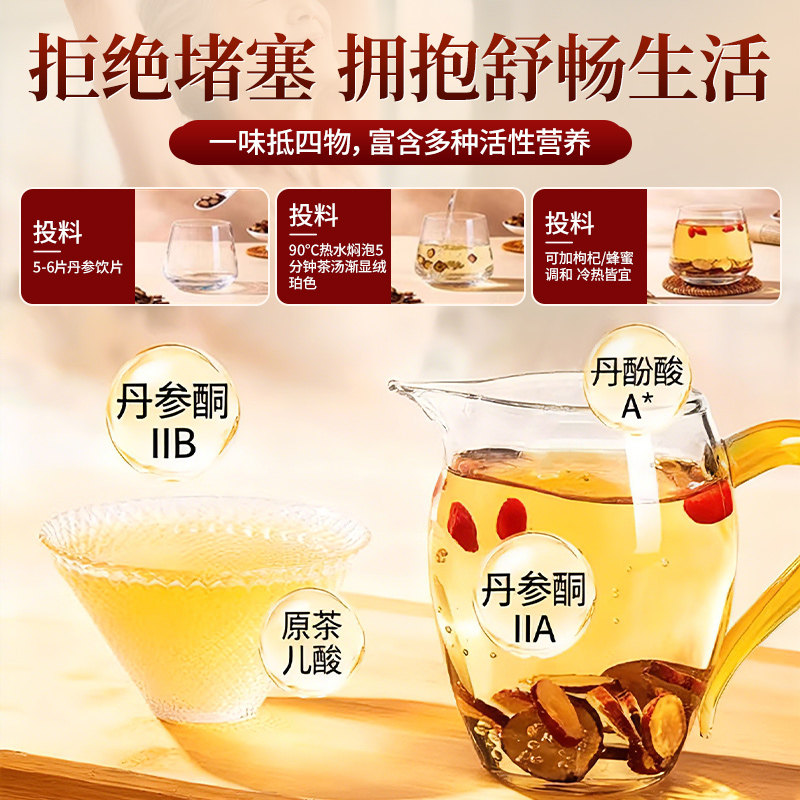 丹参中药材正品北京同仁堂信盛堂野生无硫紫丹参片泡水官方旗舰店