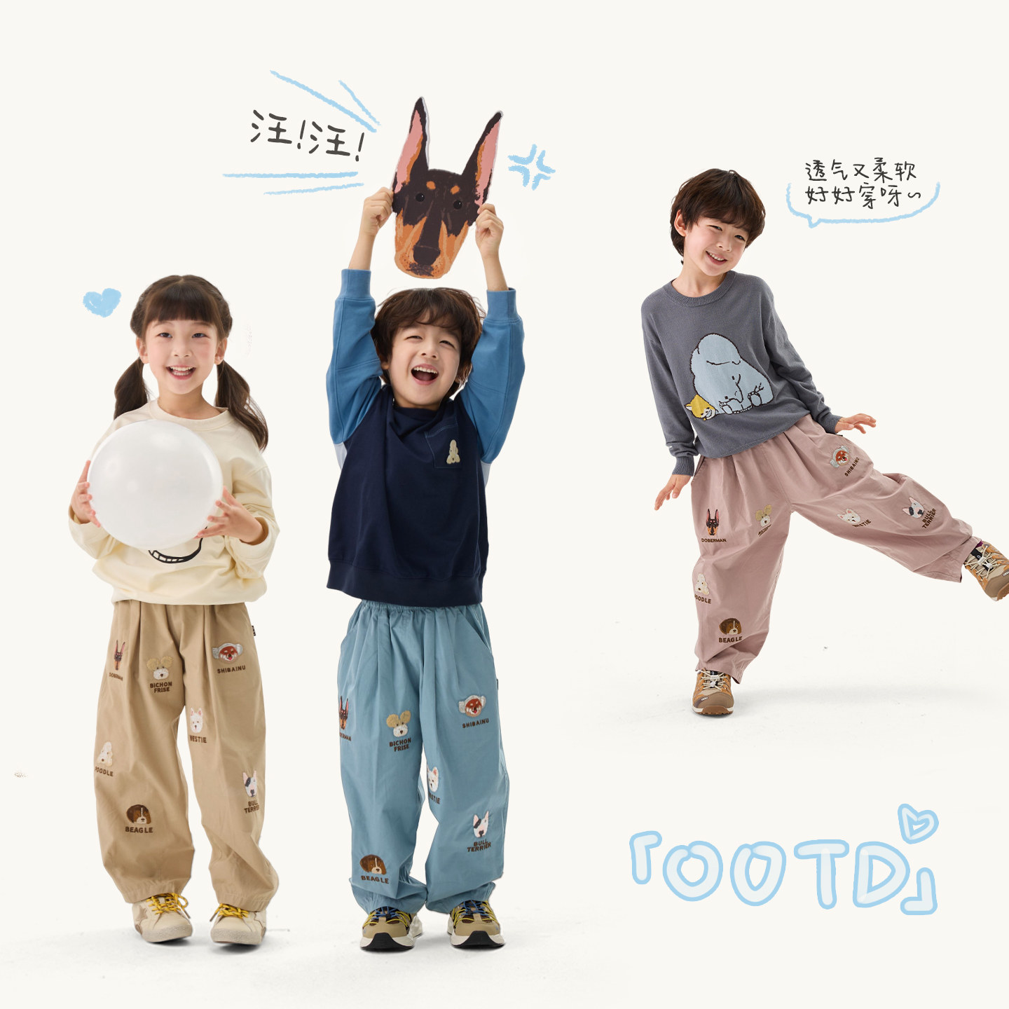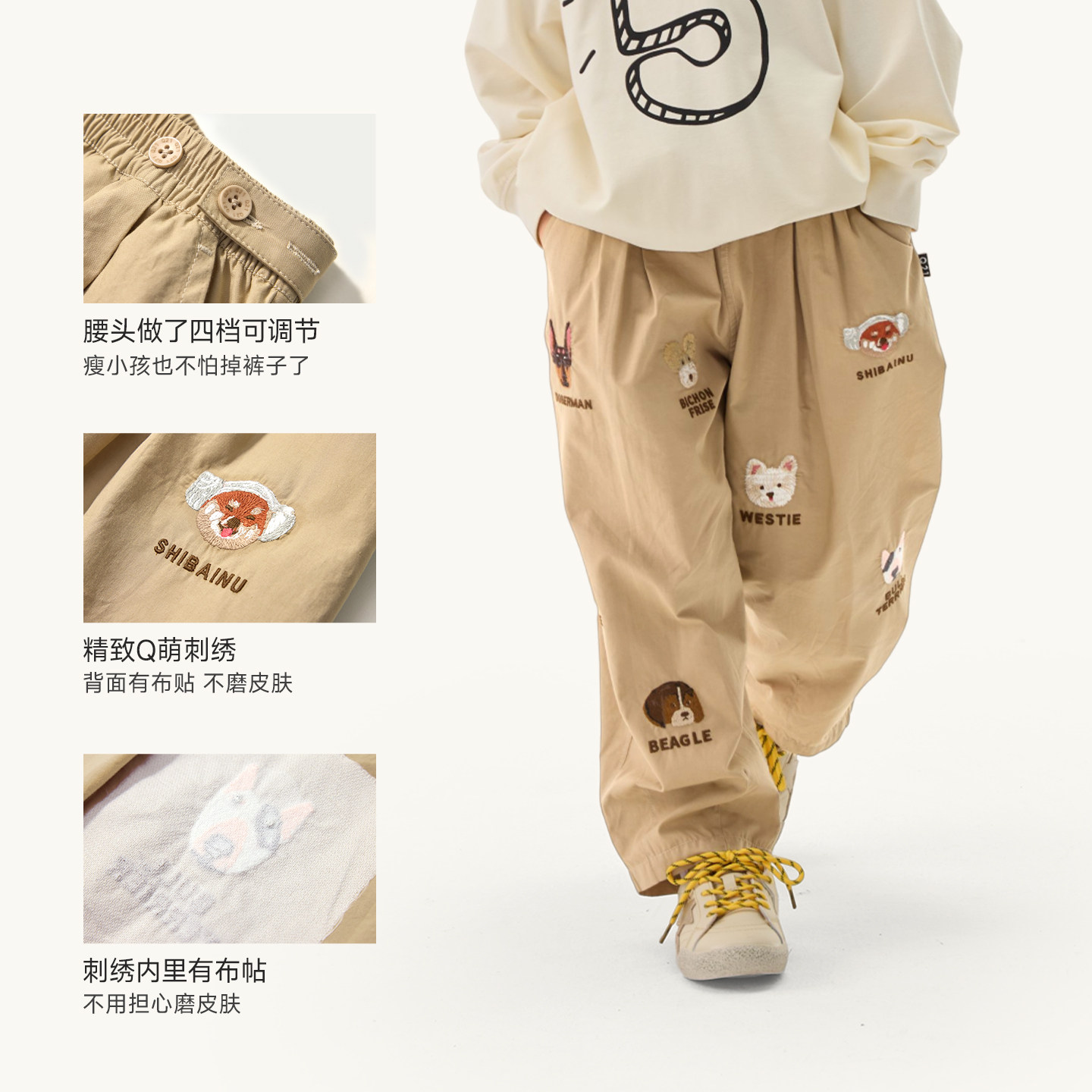 Q21纯棉府绸刺绣香蕉裤儿童长裤春季休闲裤男女童耐磨可调节裤子