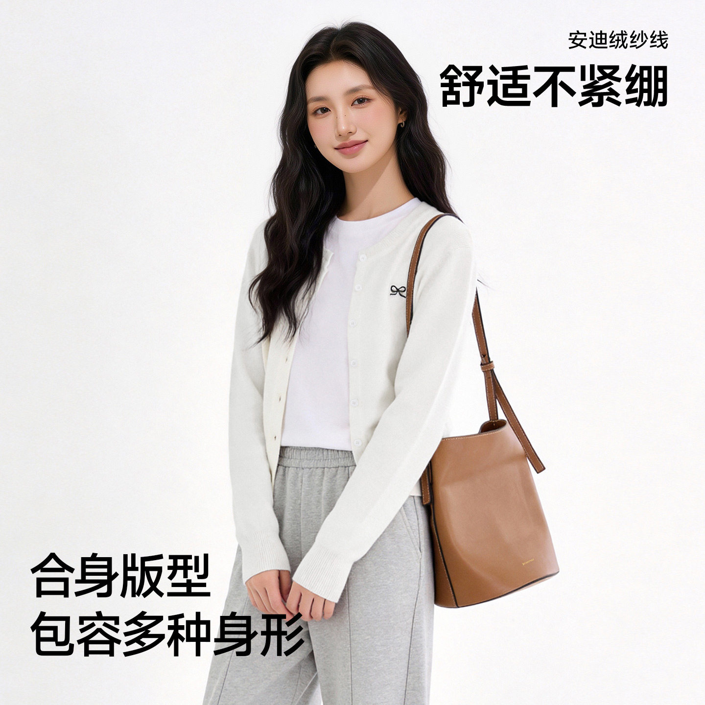 2026新款女装宽松针织开衫纯棉春秋外套纯色百搭圆领毛衣针织衫潮