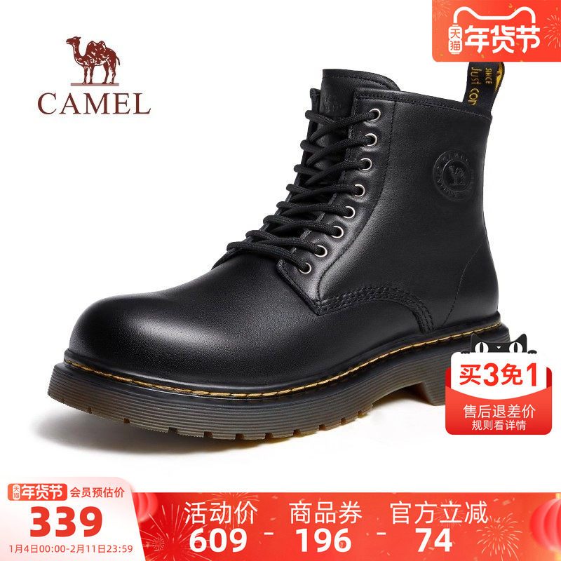 骆驼男鞋2025秋冬新款牛皮英伦潮流靴子百搭厚底复古黑色马丁靴男