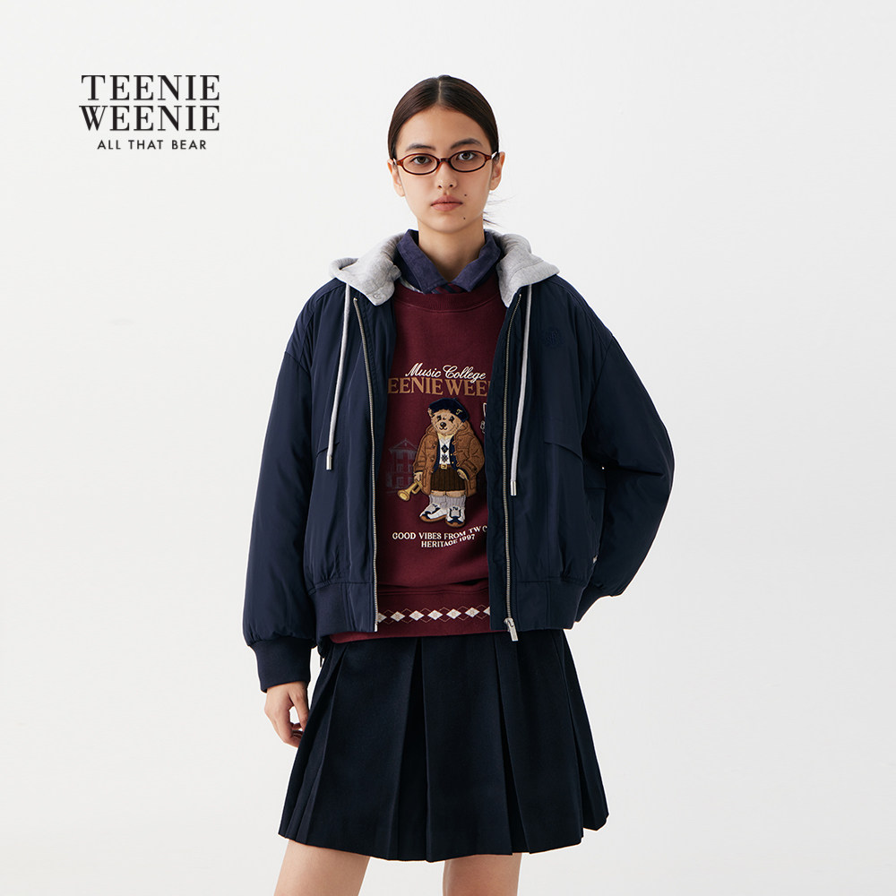 TeenieWeenie小熊女装棉服冬季轻薄短款舒适撞色拼接连帽棉衣外套