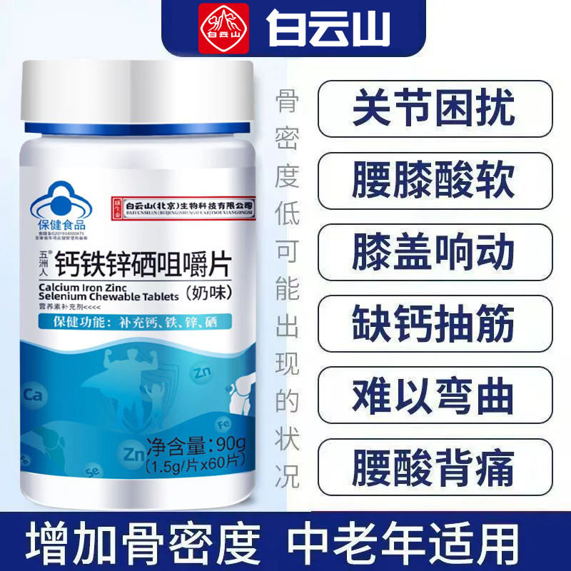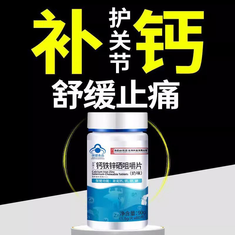 五洲人钙铁锌硒咀嚼片中老年人腰腿疼痛关节抽筋钙官方正品旗舰店