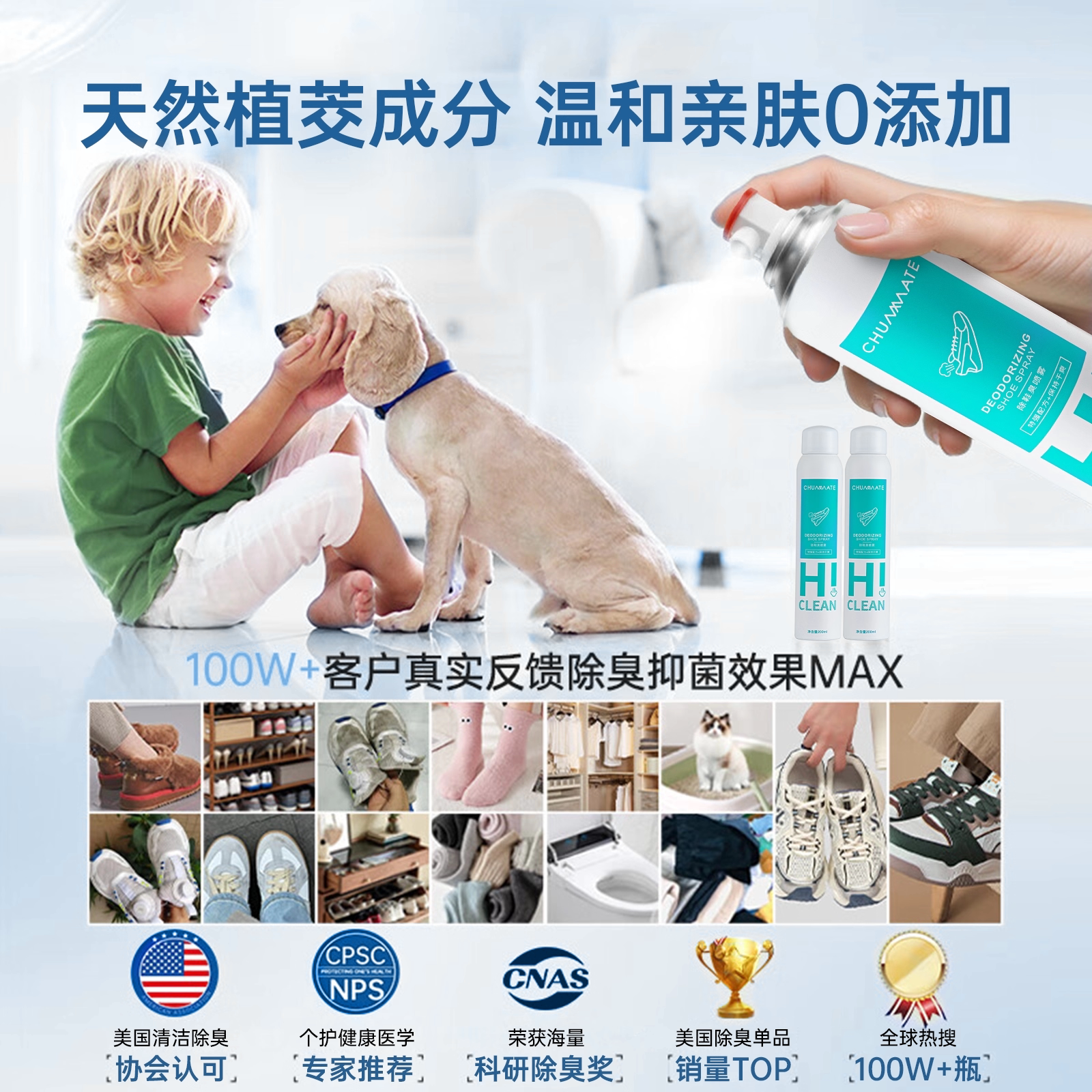 鞋子除臭喷雾剂鞋袜去臭味球鞋防臭鞋柜除异味除菌杀菌去脚臭神器