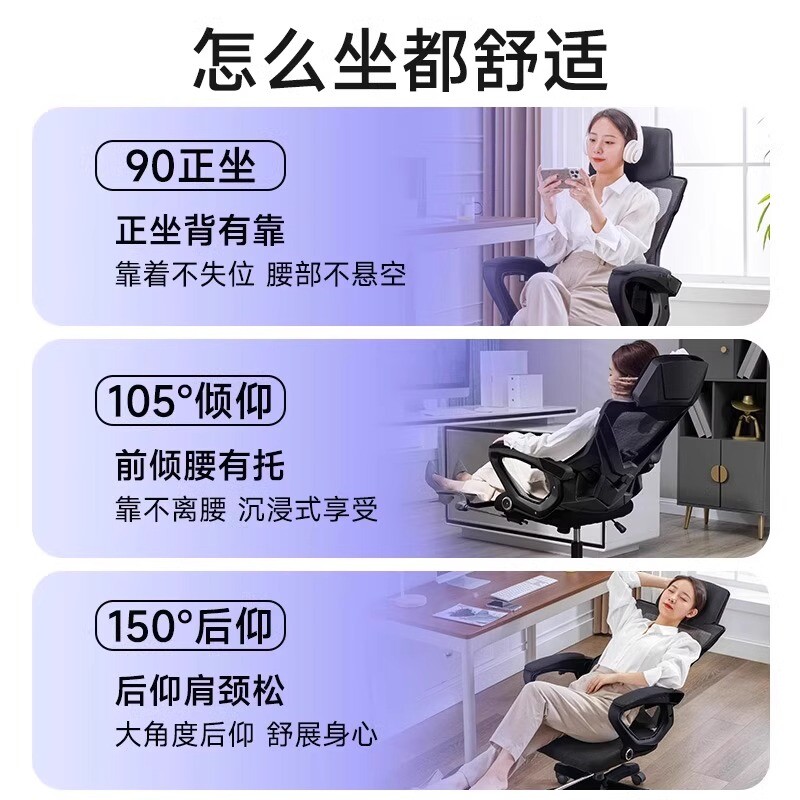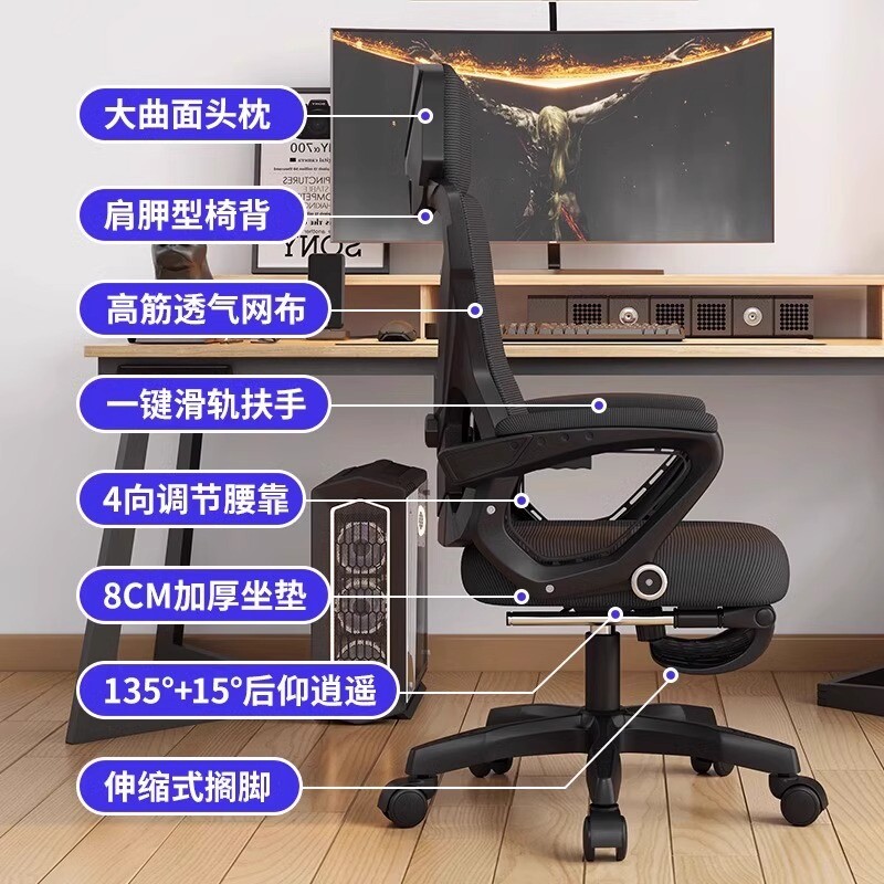 电脑椅电竞椅舒适久坐人体工学椅可躺靠背椅椅子座椅办公转椅家用