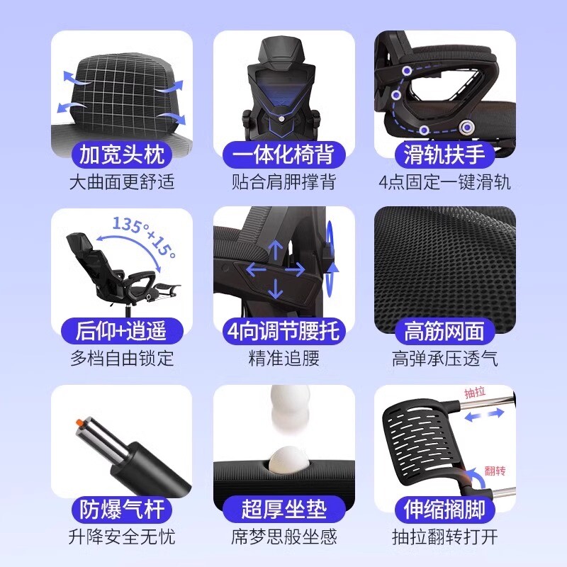 电竞椅电脑椅家用可躺办公椅学生宿舍游戏椅舒适久坐升降老板椅子